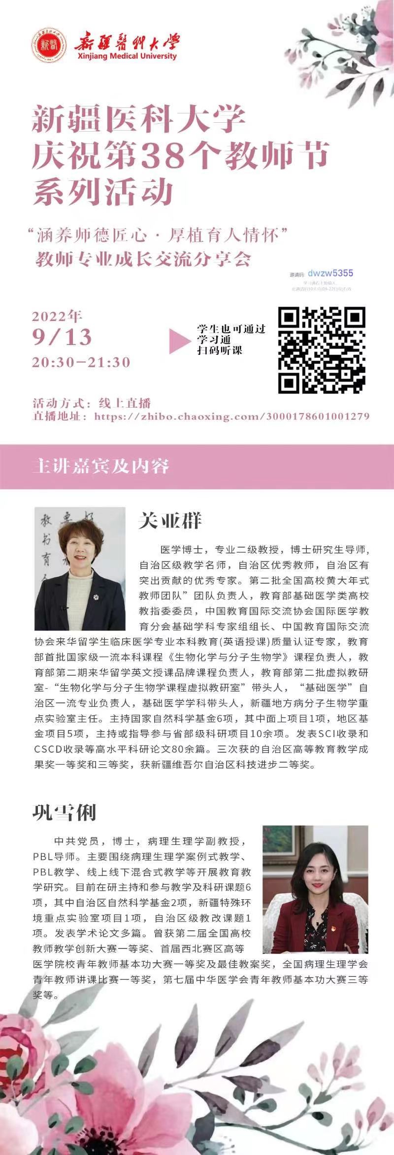 9月13日,beat365中文官方网站举办了“涵养师德匠心·厚植育人情怀”教师专业成长线上交流分享会。此次活动由教务处主办,是beat365庆祝第38个教师节系列活动之一,旨在进一步弘扬先进、树立典型,充分发挥学校教学名师、能手的模范带头作用,提高全校教师的业务能力,营造浓厚的育人氛围。