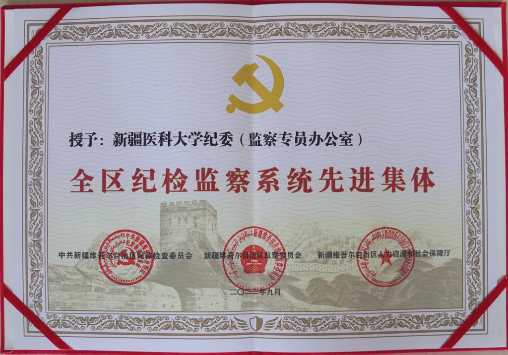 9月30日,全区纪检监察系统表彰大会在乌鲁木齐召开。beat365中文官方网站纪委(监察专员办公室)荣获“全区纪检监察系统先进集体”,这是继2019年、2020年连续两年获得“全区纪检监察工作高质量发展先进集体”之后又一殊荣。