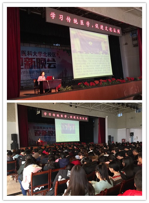 安冬青教授通过形象的图片对比、生动的案例分析,将传统医学与传统文化紧密相连,从儒、释、道到中国的人文精神,由浅入深娓娓道来,从时间脉络梳理了近六十年来新中国中医药发展史,并结合实际对国家近年来出台的中医药相关发展规划以及工作指导意见进行了讲解阐述,通过列举近年来党和国家领导人对关心中医药发展的事例、批示和讲话精神,提振了在场听众对中医药发展的信心。她报告中指出,中医药学不仅为中华优秀传统文化的形成和发展作出了卓越贡献,而且为中华民族认识和改造世界提供了有益启迪,成为中华民族的重要标识,要求同学们今后不仅要做中医药文化的传承人,更要做中国文化的继承人,将祖国的文化传承、传播、发扬、光大。