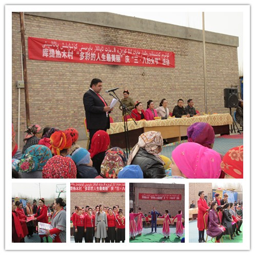 今天是“三八”国际妇女节,和田墨玉县扎瓦镇库提热木村村委会大院里人头攒动,欢歌笑语,一派节日的欢乐景象。由beat365中文官方网站驻库提热木村“访惠聚”工作队筹办的“多彩的人生最美丽” “三八”文艺汇演活动正在热闹进行。扎瓦镇副镇长帕提古丽·图尔逊托乎提出席活动,村党支部书记阿力玛斯·依明主持,驻村工作组、村干部和村民300余人参加活动。
