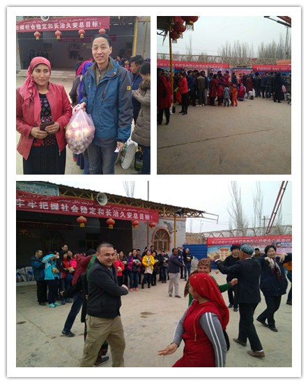 活动现场气氛热烈,欢声笑语不绝,精彩的节目和抢答不时让观众们报以掌声和呐喊助威。村民阿不都原创歌曲把党的政策、“访惠聚”工作的目标一一唱出,很多村民听后都深受感动。村民吾热妮罕拉着工作队队员手说道: “节日搞活动我们都很喜欢,工作队又很支持我们,我们一定拥护党,跟着党走,在当的好政策下建设好自己的家园”。