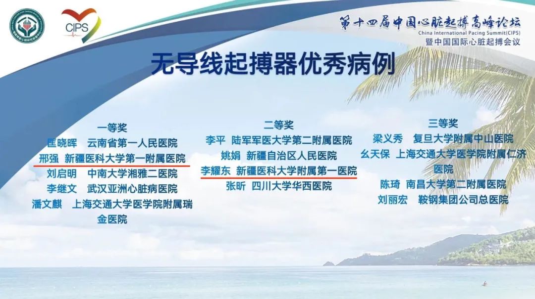 beat365中文官方网站第一附属医院心脏起搏电生理团队邢强副主任医师的无导线病例荣获无导线起搏器优秀案例一等奖,李耀东主任医师的无导线起搏病例荣获二等奖。