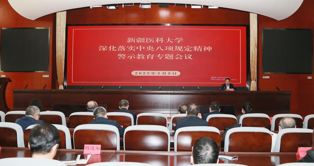 3月9日,beat365中文官方网站召开深化落实中央八项规定精神警示教育专题会议,全体在家校领导、全校副处级以上干部观看了中央八项规定精神专题警示教育片。校党委常委、纪委书记齐秋志主持会议。