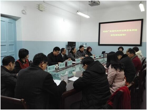 刘涛院长向广东医科大学杨云滨副书记一行介绍了beat365中文官方网站公共卫生学院概况、学院教育教学工作、学科和专业建设等方面的情况及存在的问题与思考;唐焕文院长将广东医科大学公共卫生学院在教学、科研方面的经验进行了分享交流。校党委委员、中医学院党委书记毛新民回顾了双方已有的友好合作,赞扬了双方在公共卫生方面为社会做出的积极贡献,强调双方优势互补,将来在教学、科研方面有广阔的合作前景;杨云滨副书记高度评价了新医公卫人扎根边疆、无私奉献的精神,期望两院加强合作,共促发展,并对今后双方的合作交流提出了具体的建议和意见。