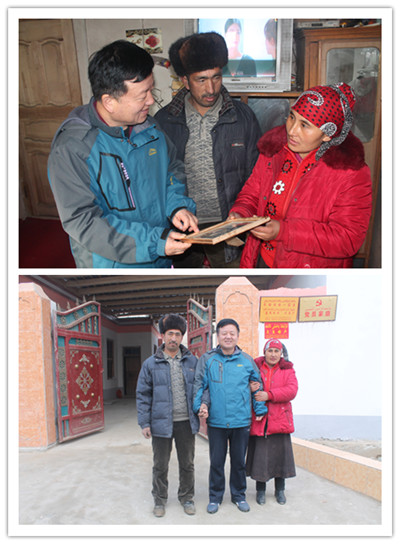 墨玉县扎瓦镇胡木旦村“认亲”活动早在2016年的3月就开始了,这源自于2016年驻村工作队开展的“庭院经济”改造。驻村工作组队员每人都结了一户“穷亲戚”,曹忠明就这样认下了坚乃提罕·麦麦提这门亲戚。那些日子,乡亲们都卯足了劲,清理庭院、平整土地,建鸡舍、盖羊圈。干的热火朝天。