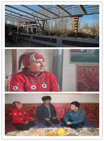 坚乃提罕·麦麦提家住胡木旦村5小队,养育了一儿一女,45岁的她勤快利索,还是村里的党员。丈夫麦提图尔荪·艾比布拉是村里的木工,也是个手艺人,然而他总是三天打鱼两天晒网的。这不,自从曹忠明和他家认了亲戚,村里搞了庭院经济后,麦提图尔荪?艾比布拉仿佛换了一个人,又锯又刨,天天的手不闲忙个不停。