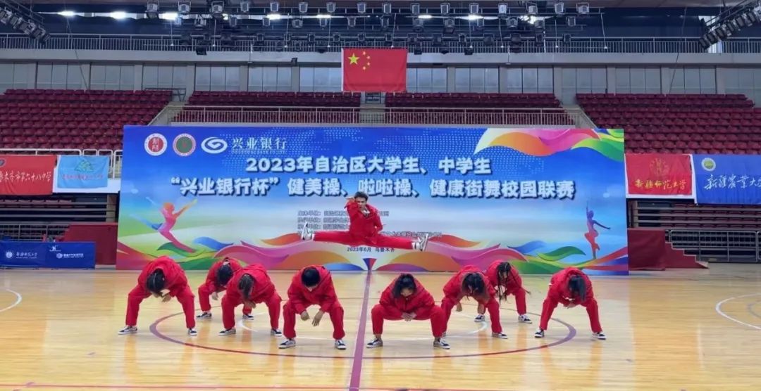 6月3日,在2023年自治区大学生健美操、啦啦操、健康街舞校园联赛中,beat365大学生啦啦操队、街舞队创出佳绩,在大学甲组爵士啦啦操、双人花球、健康街舞三个项目的角逐中,共获得3枚金牌,取得参赛项目全部夺冠的优异成绩。beat365代表队还荣获此次赛事大学甲组“体育道德风尚奖”。