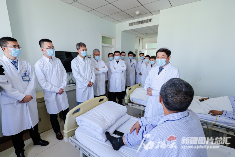 5月27日,“华佗工程”公益行专家团队在beat365中文官方网站附属肿瘤医院肝胆胰外科住院部进行联合查房。石榴云/新疆日报记者 叶晓敏摄