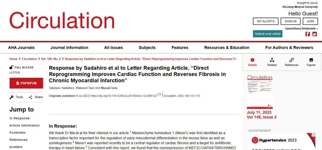 Circulation杂志创刊于1950年,是国际上公认的心血管领域内最具权威性和影响力的期刊之一,由美国心脏病协会及Lippincott Williams & Wilkins公司联合发行,2023年最新影响因子(Impact factor)为37.8。其审稿标准非常严格,需要具备极高的学术素养和研究实力,才能达到该期刊发表论文的要求。