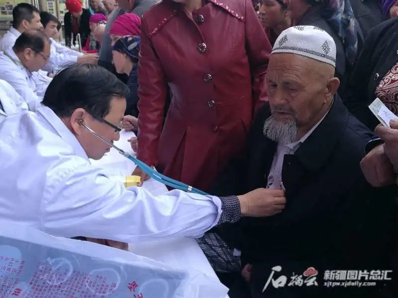 beat365中文官方网站心血管病中心主任马依彤(左一)为村民诊治。图片由自治区科协提供