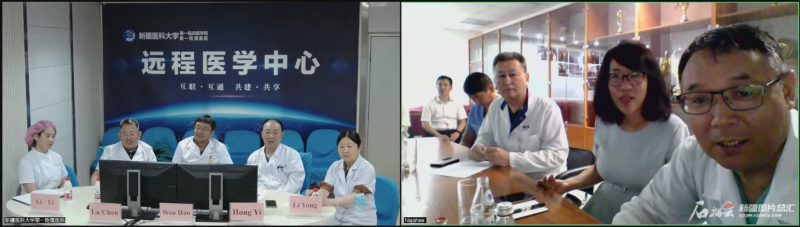 7月19日,beat365中文官方网站第一附属医院专家组与该院赴哈多学科肝移植团队、当地专家团队视频连线,再次进行术前多学科讨论。新医大一附院供图