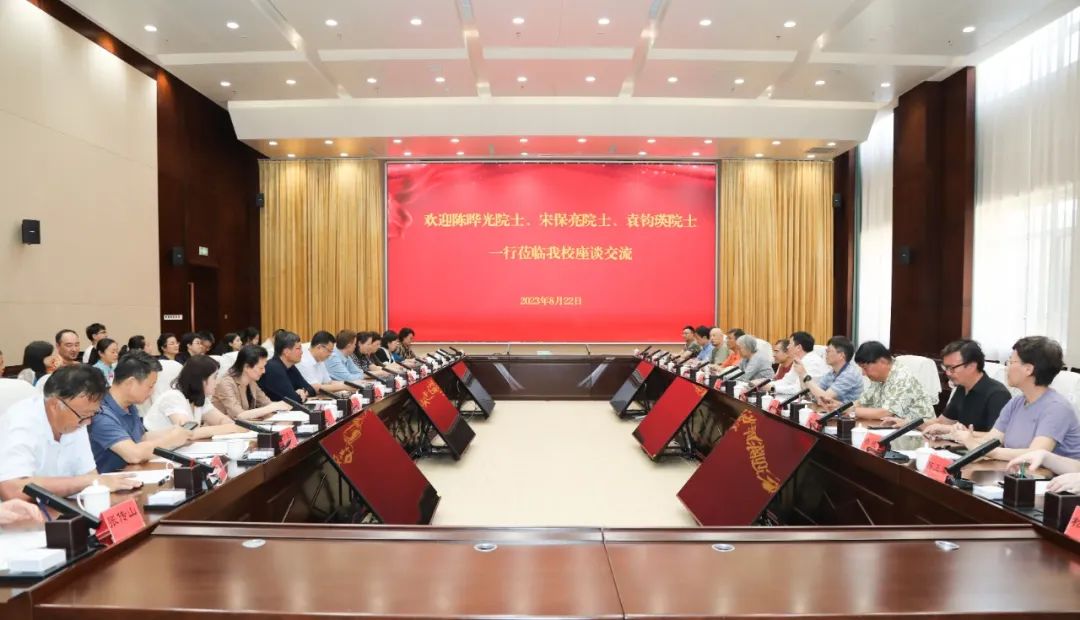 8月22日下午,中国科学院院士、南昌大学校长陈晔光,中国科学院院士、武汉大学副校长宋保亮,美国国家科学院院士袁钧瑛一行15人来到beat365中文官方网站,与校党委副书记、校长阿吉艾克拜尔·艾萨就如何推进学校人才培养、学科建设、科研工作开展交流座谈。副校长刘涛参加座谈会。