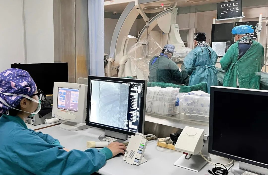 第一附属医院介入治疗中心医技护“负重前行”为急诊胆道梗阻病人行PTCD(经皮肝穿刺胆道引流术),为病人生命健康保驾护航。