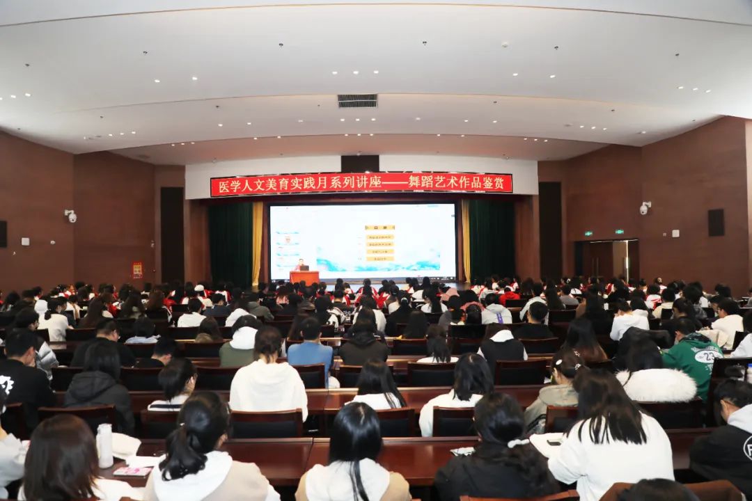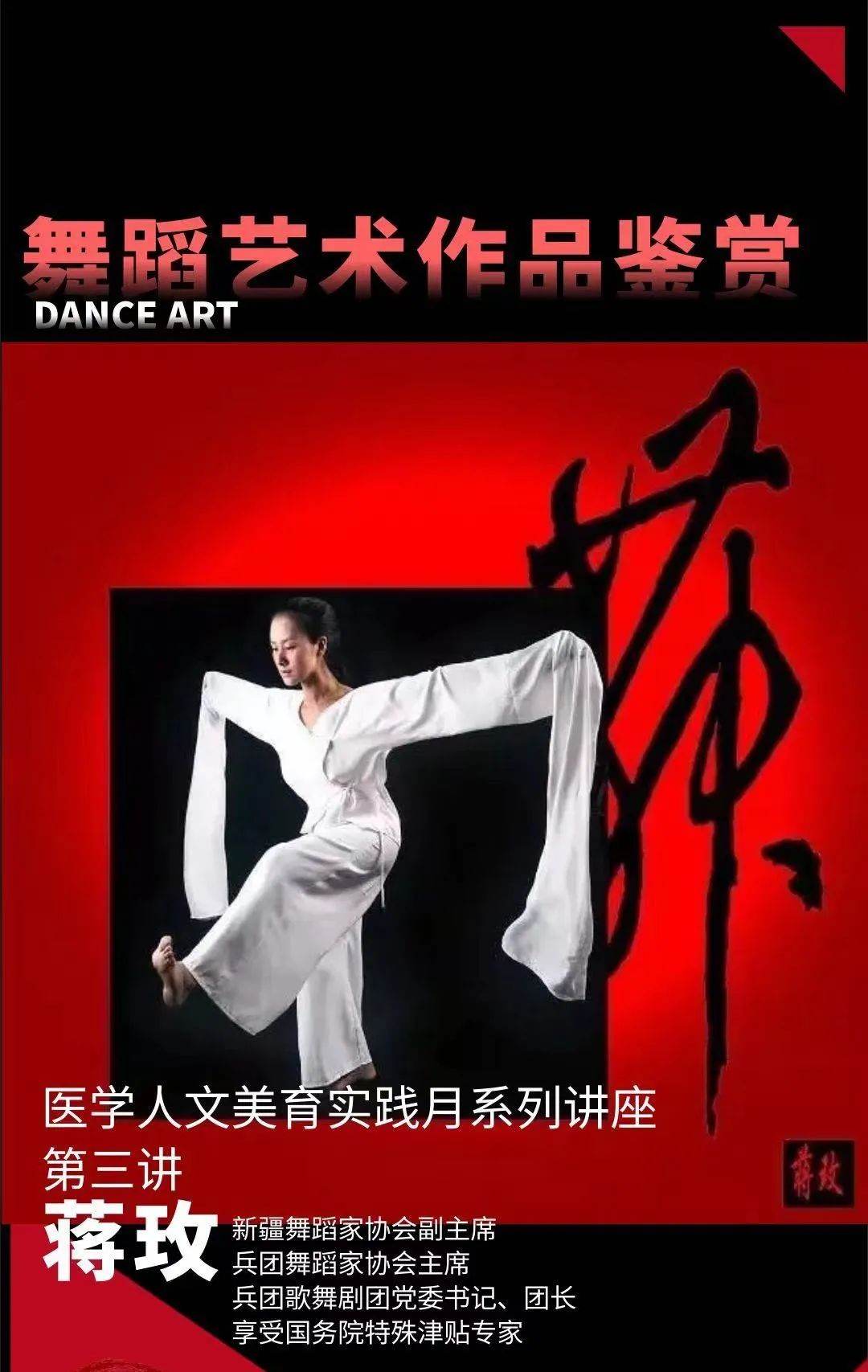 为深入推进五育融合,增强对新时代医学生的美育熏陶,实现以“美”促德、以“美”启智、以“美”润心的育人目标,11月5日上午,beat365中文官方网站举办了医学人文美育实践月系列讲座第三讲,邀请新疆舞蹈家协会副主席蒋玫,为新医学子带来一场关于“舞蹈艺术作品鉴赏”的精彩讲座。