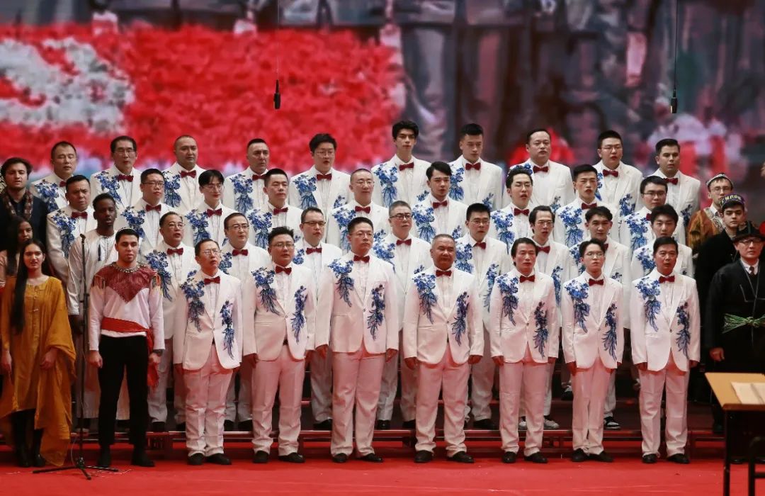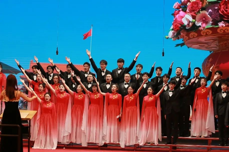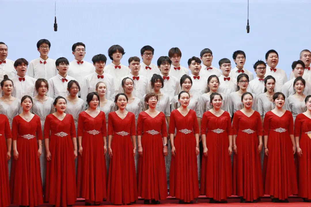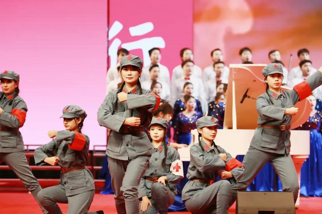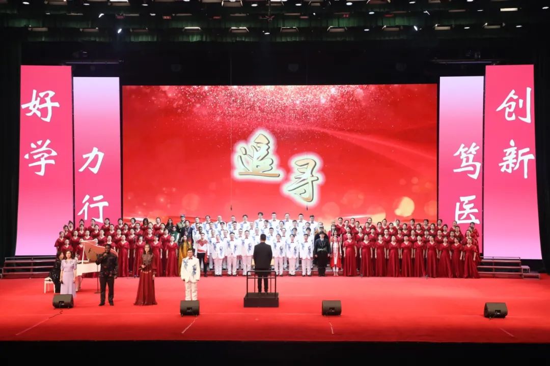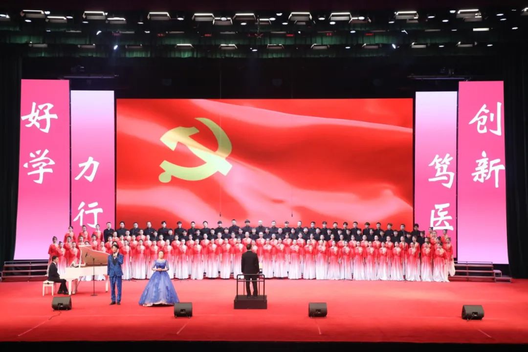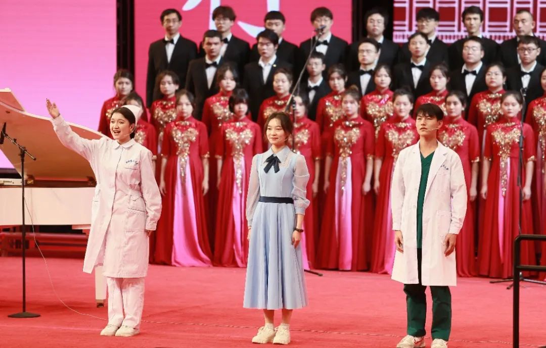 金色的光芒闪耀在胜利的旗帜上,和谐的旋律谱写在光荣的旗帜上;坚定不移地走中国特色社会主义道路,凝聚在我们伟大的旗帜上。公共卫生学院演唱的歌曲《走向复兴》,发出了新医人为中华民族伟大复兴而团结奋斗的最强音。