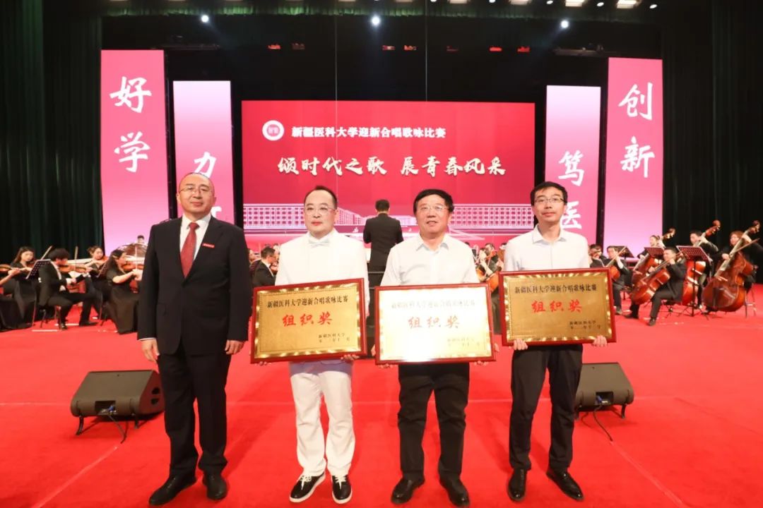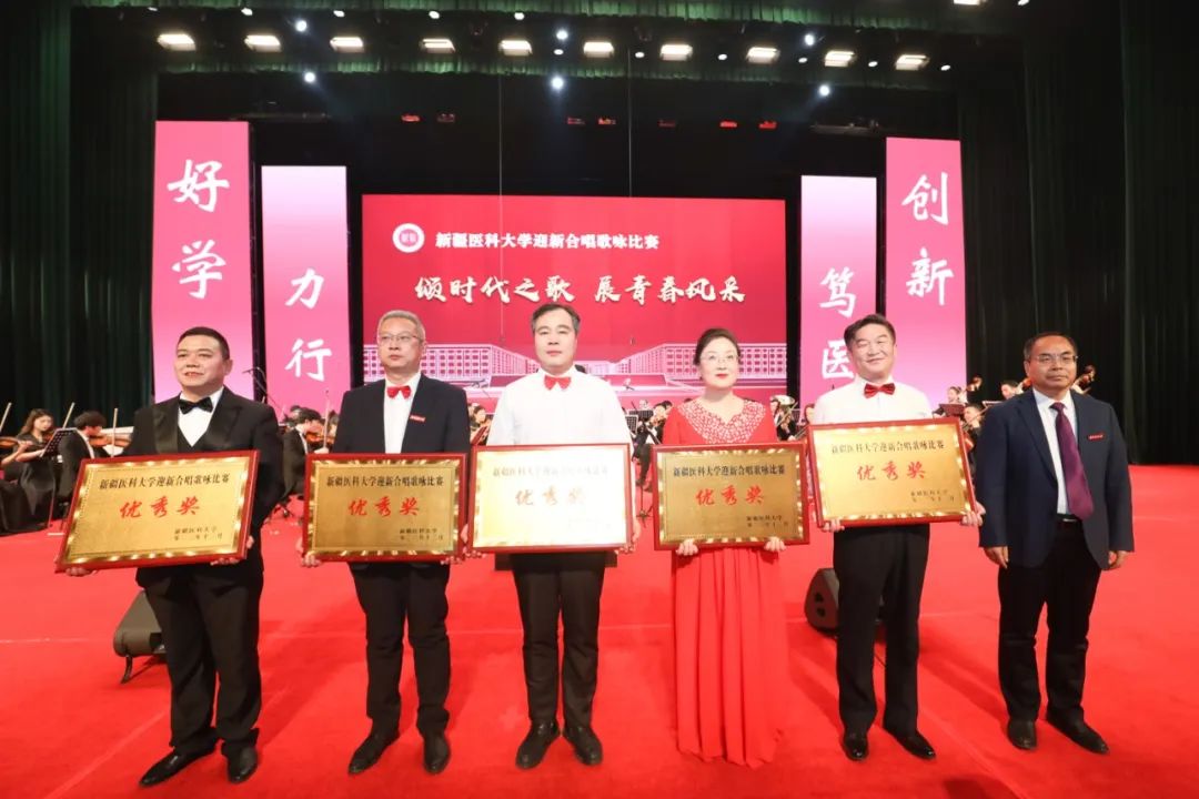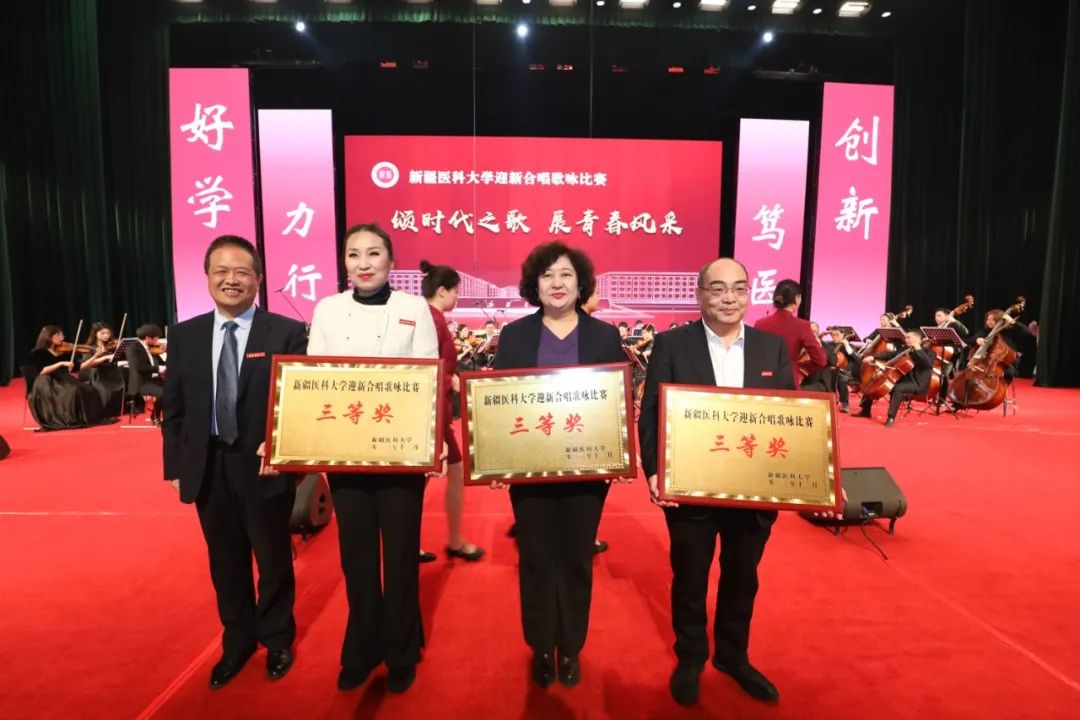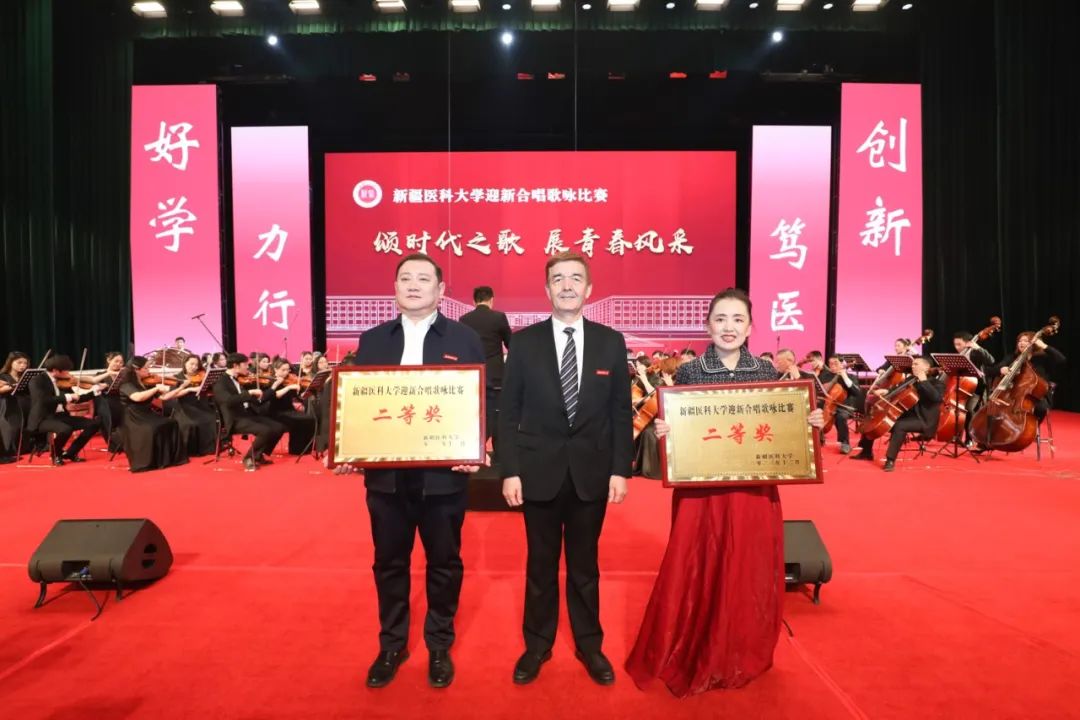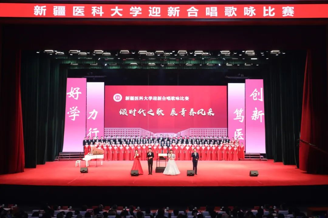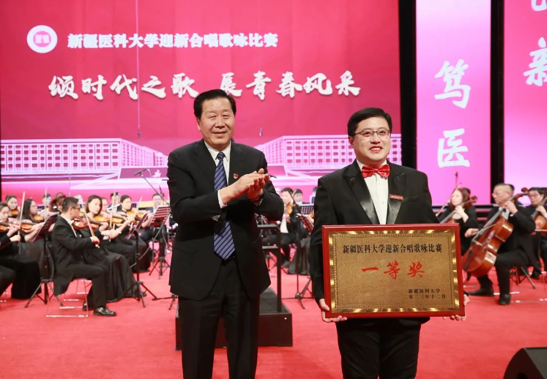 校党委书记赵天杰,校党委副书记、校长阿吉艾克拜尔·艾萨,和全体在家校领导,机关干部代表、学院教师代表,八家直属附属医院领导、教职工代表,学校非隶属附属医院和教学医院的领导和教师代表,本科生和研究生代表参加了活动。新疆合唱学会会长、新疆钢琴学会副会长邓文欢,新疆音乐家协会副主席、全国优秀青年词曲作家陈子文,高校钢琴及艺术理论教学专家李亚军,中国合唱协会理事、新疆合唱学会秘书长曹健,新疆师范大学音乐学院声歌系副主任马巧梅,担任本次大赛的评委嘉宾。