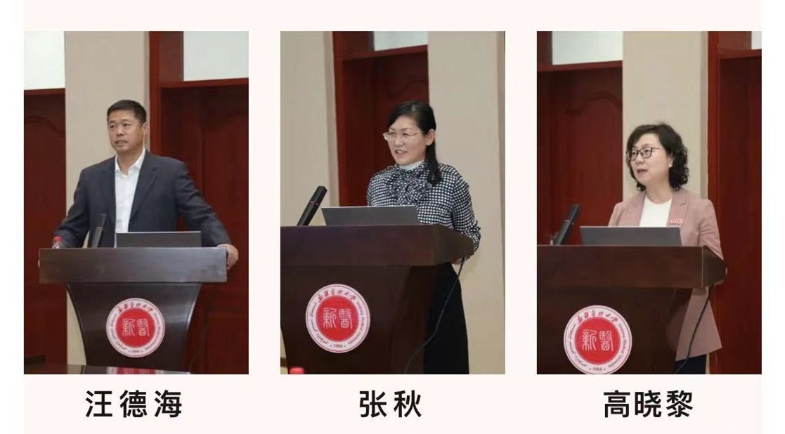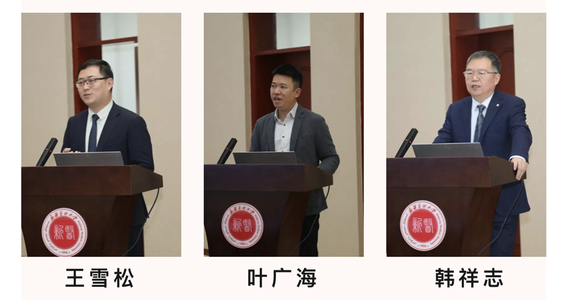 新疆医药健康产学研联合体成立大会后,召开了第一届学术会议,会议由校党委常委、副校长杨新玲主持。