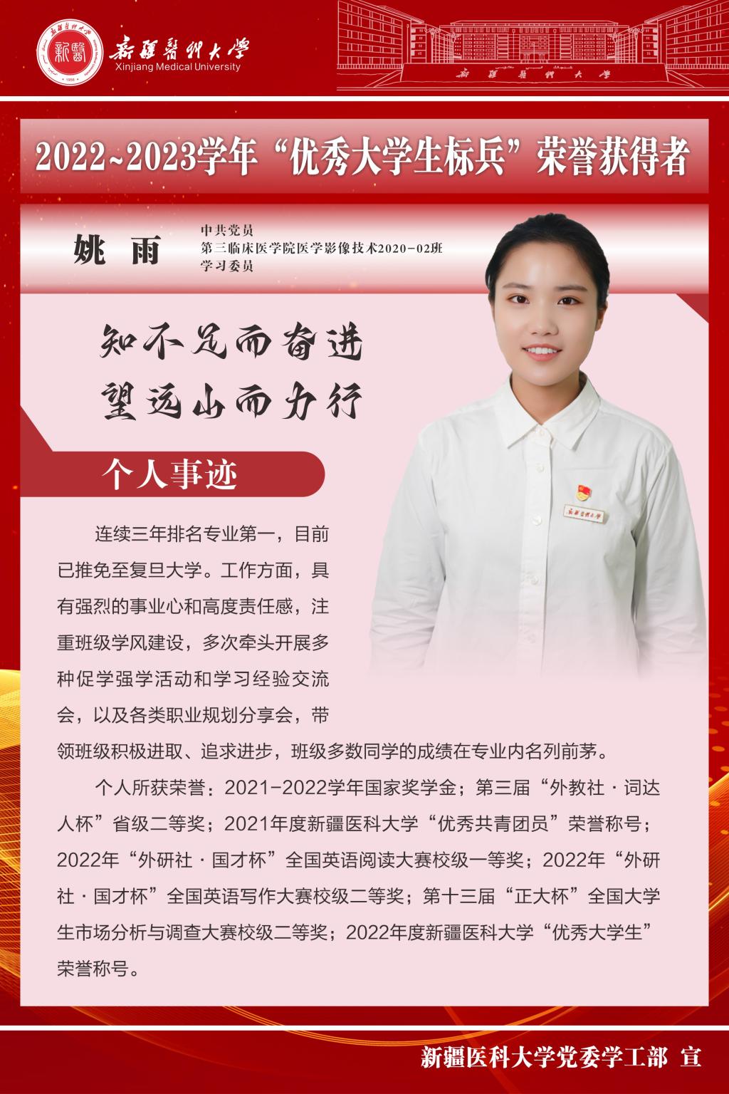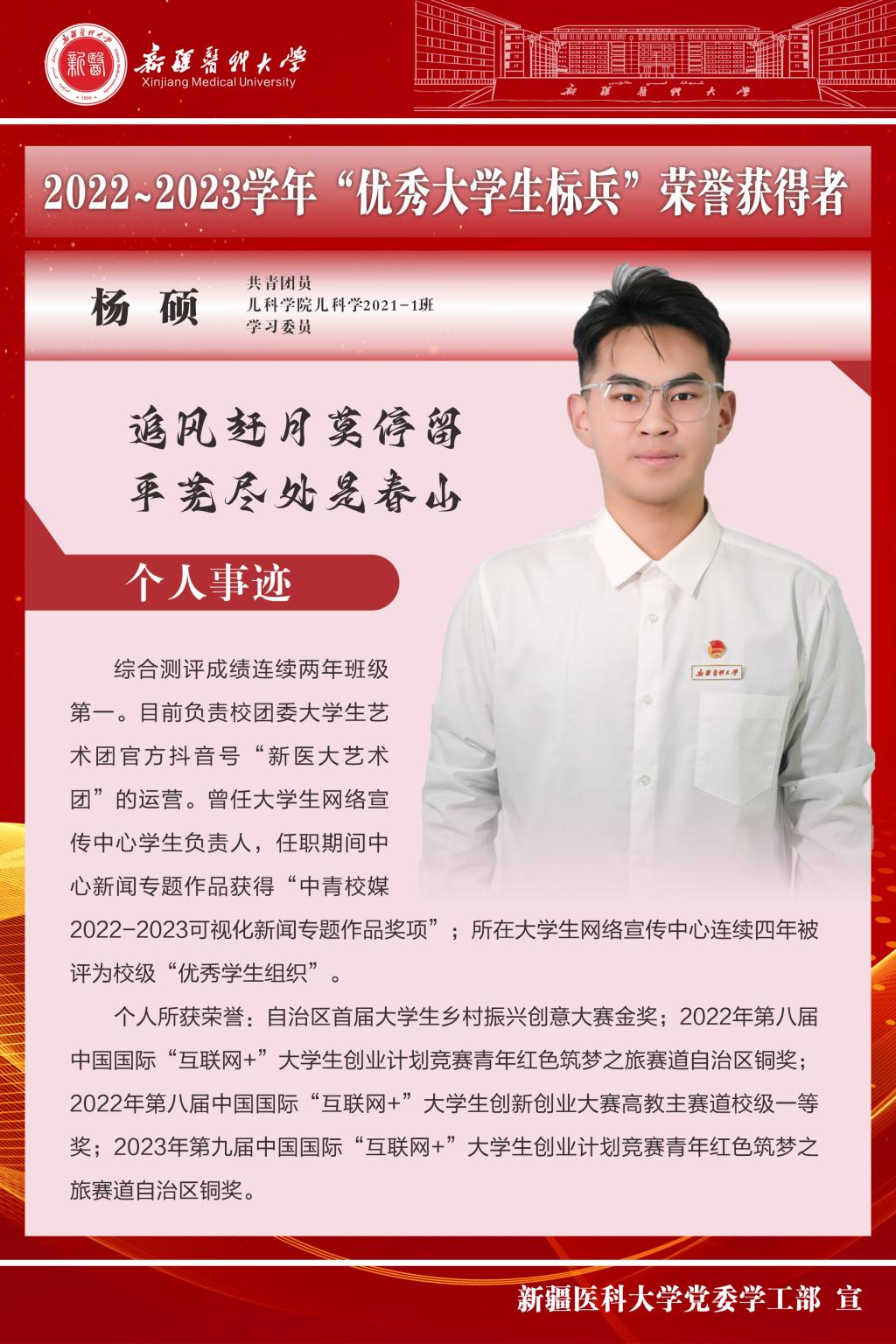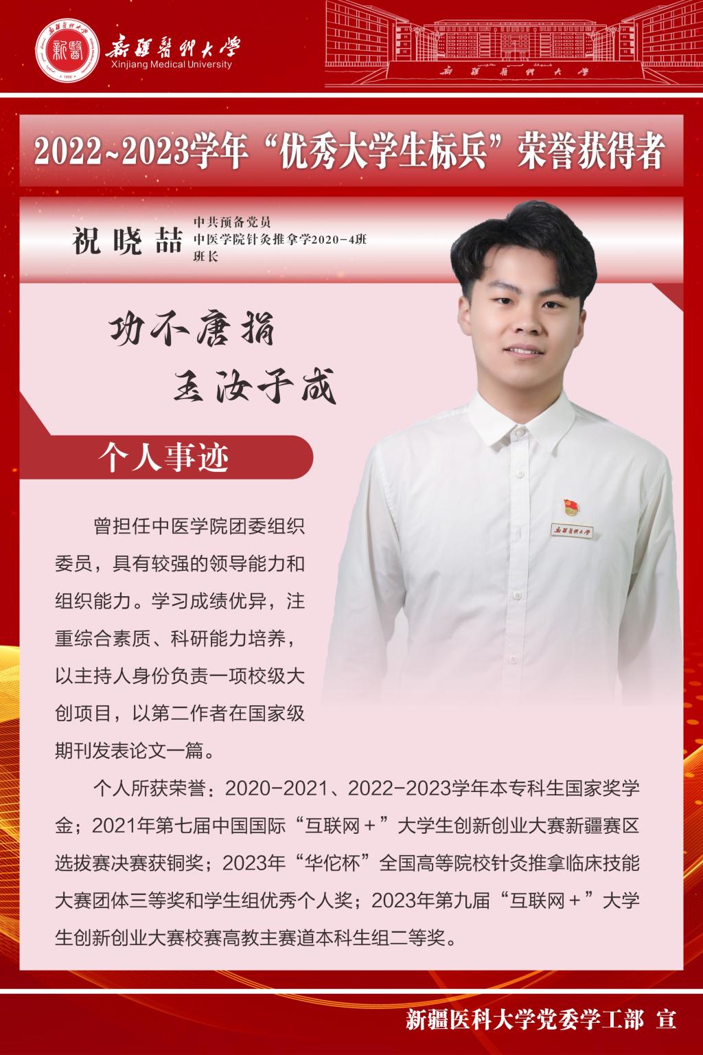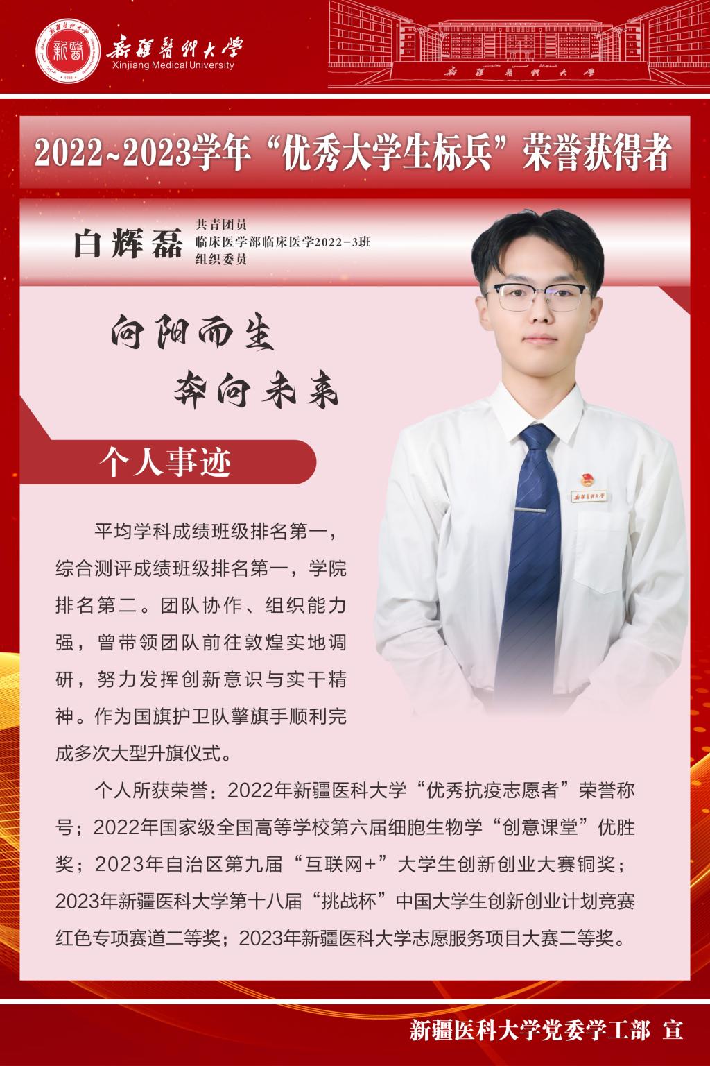 这一年的步伐,新医人走得坚实有力,见神采、显底气,广大新医学子用踔厉奋发、拼搏奋进、团结奋斗的自信和力量,创造了2023年的优异成绩,书写了成长之路的美好篇章。为积极引导广大新医学子牢记初心使命、展现青春风采,表彰过去一年学校涌现出的政治立场坚定、道德品质高尚、学习成绩优异、学术行为端正、科研创新能力突出,德智体美劳全面发展的优秀集体和个人。今天学校官微推出beat365中文官方网站2022-2023学年“优秀大学生标兵”。