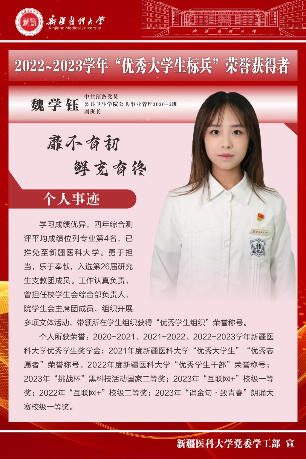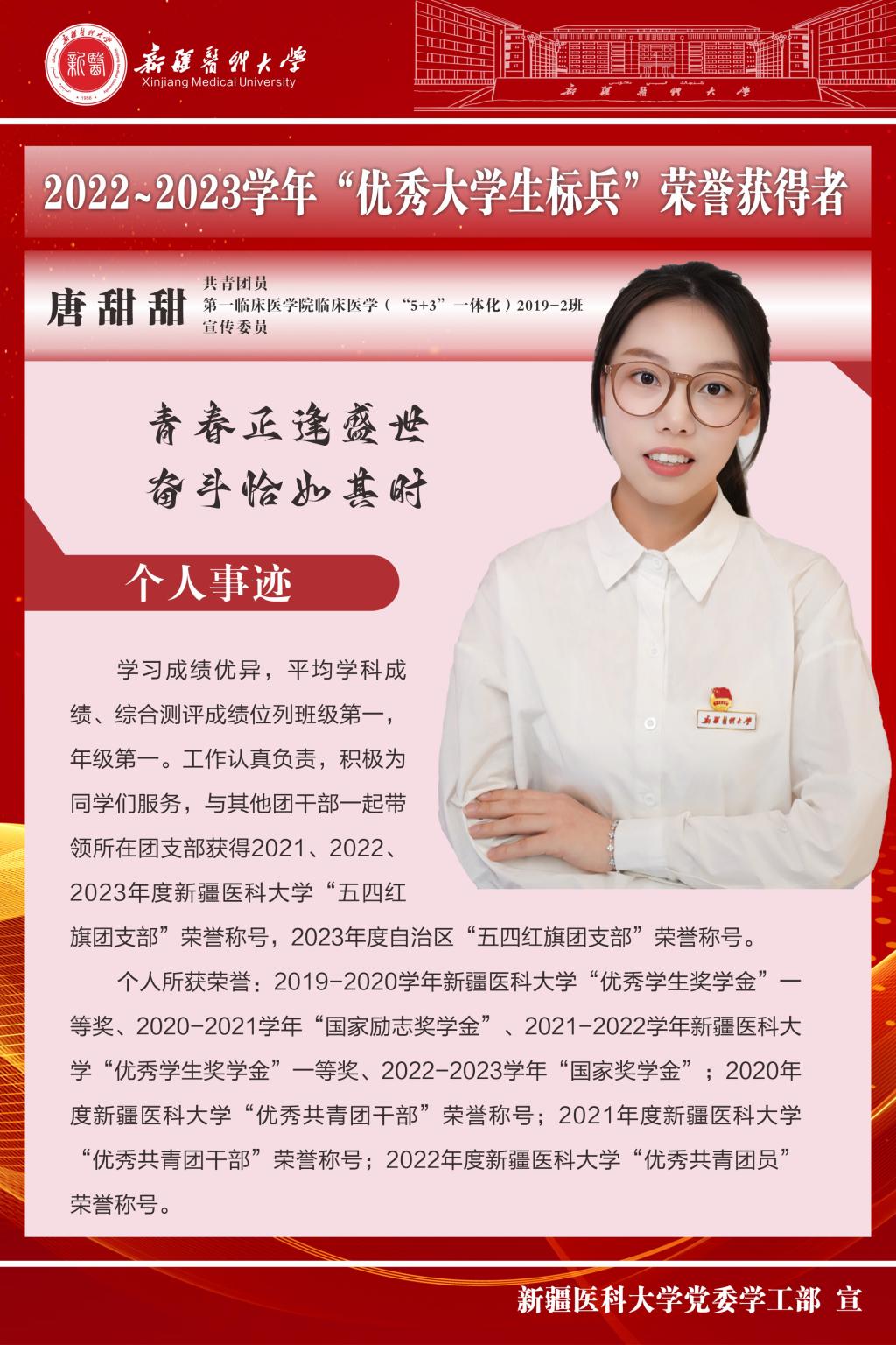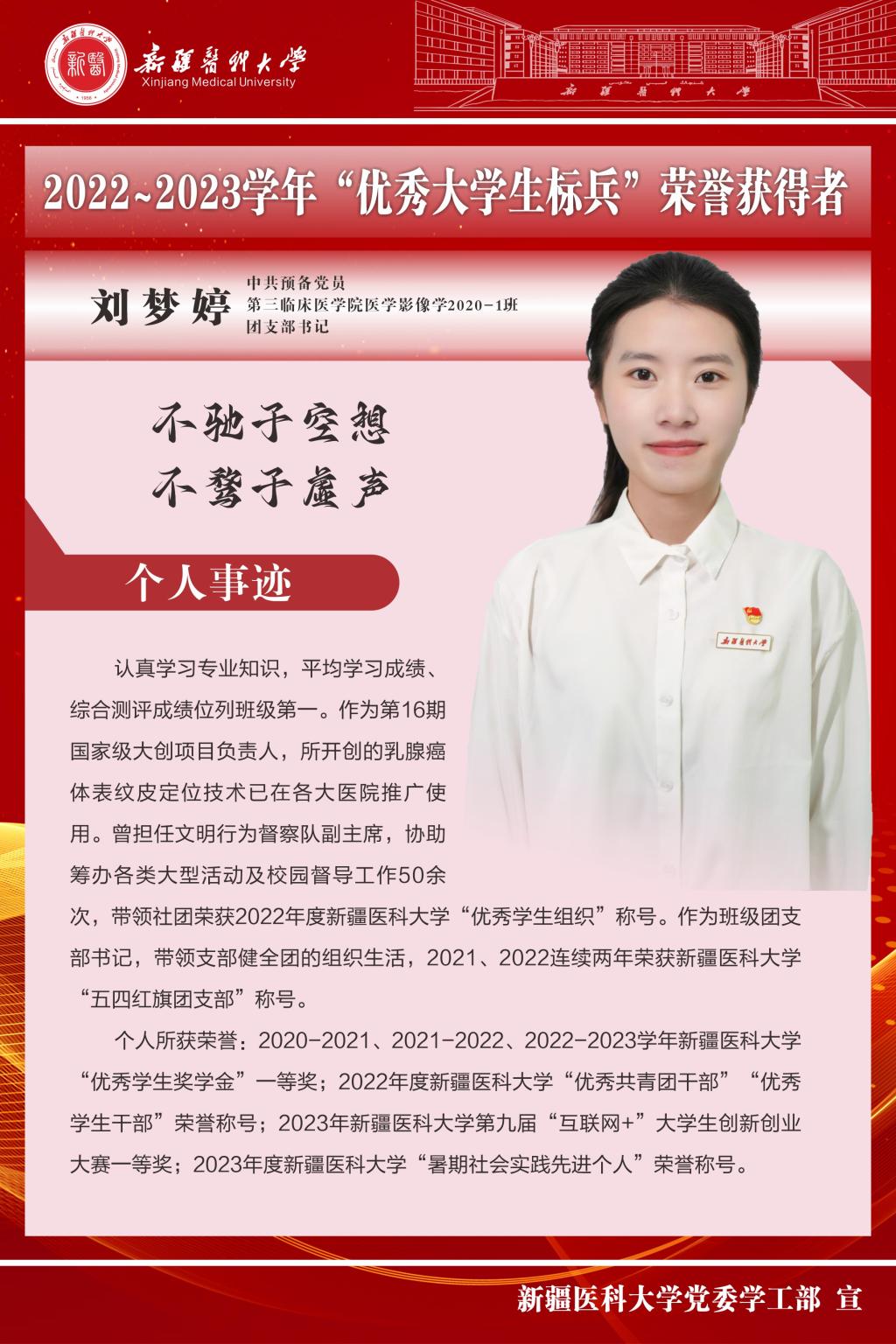这一年的步伐,新医人走得坚实有力,见神采、显底气,广大新医学子用踔厉奋发、拼搏奋进、团结奋斗的自信和力量,创造了2023年的优异成绩,书写了成长之路的美好篇章。为积极引导广大新医学子牢记初心使命、展现青春风采,表彰过去一年学校涌现出的政治立场坚定、道德品质高尚、学习成绩优异、学术行为端正、科研创新能力突出,德智体美劳全面发展的优秀集体和个人。今天学校官微推出beat365中文官方网站2022-2023学年“优秀大学生标兵”。