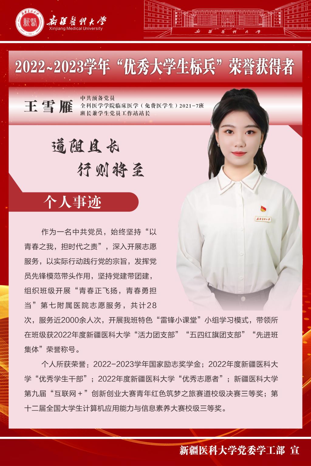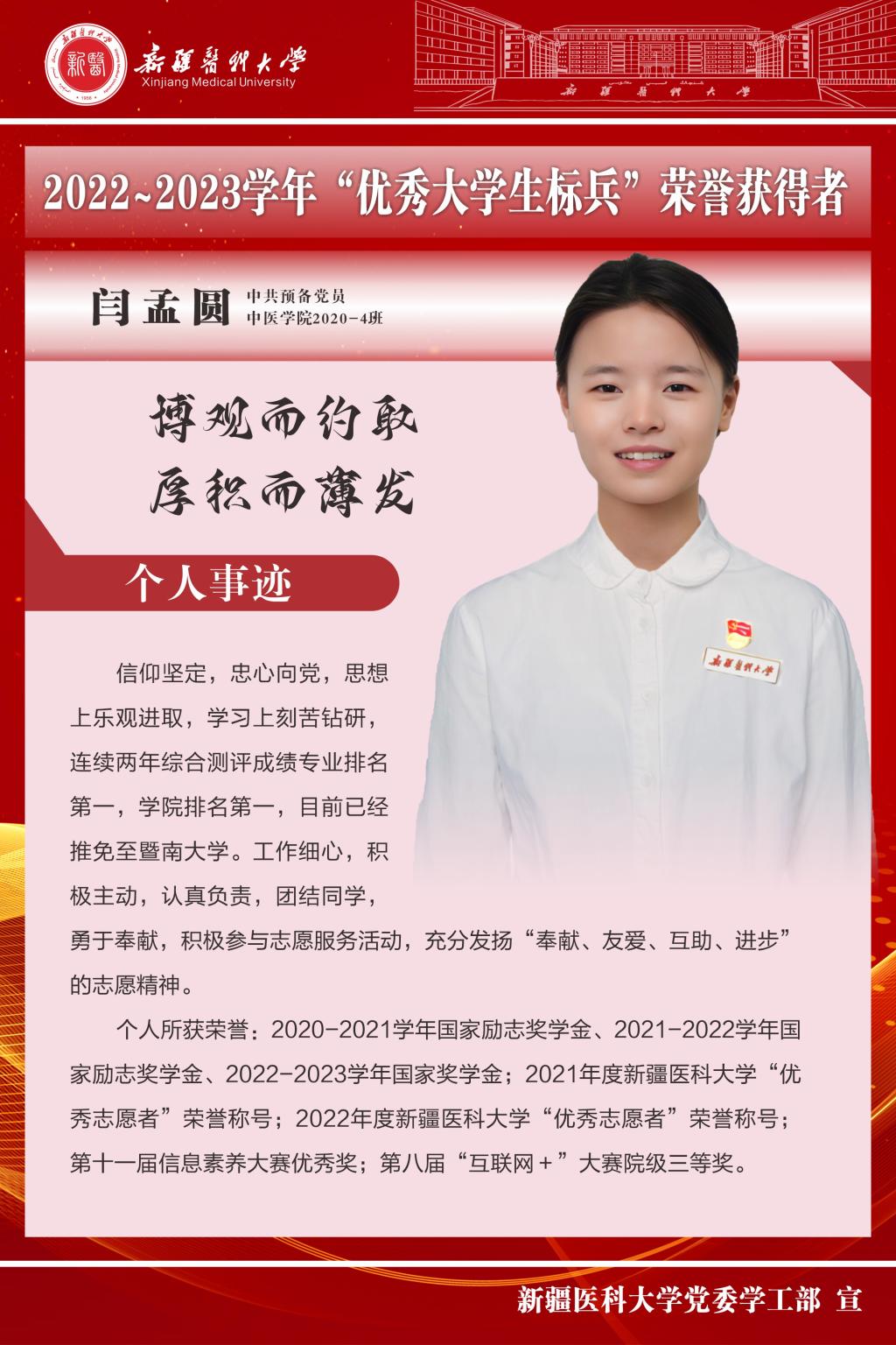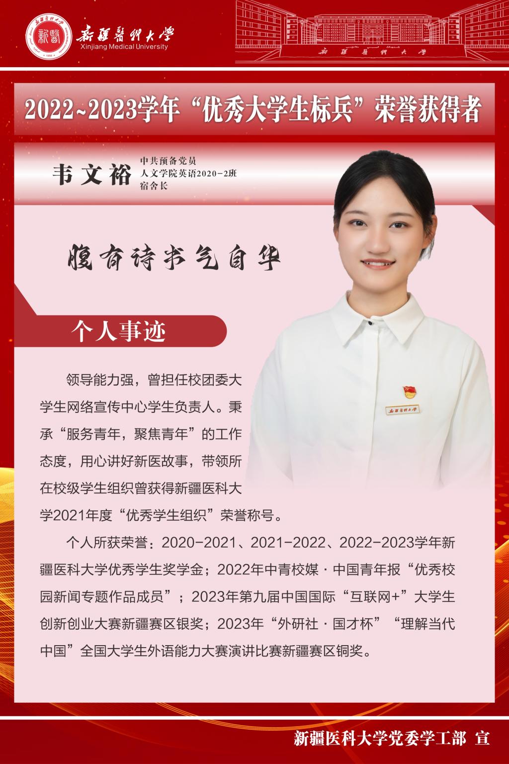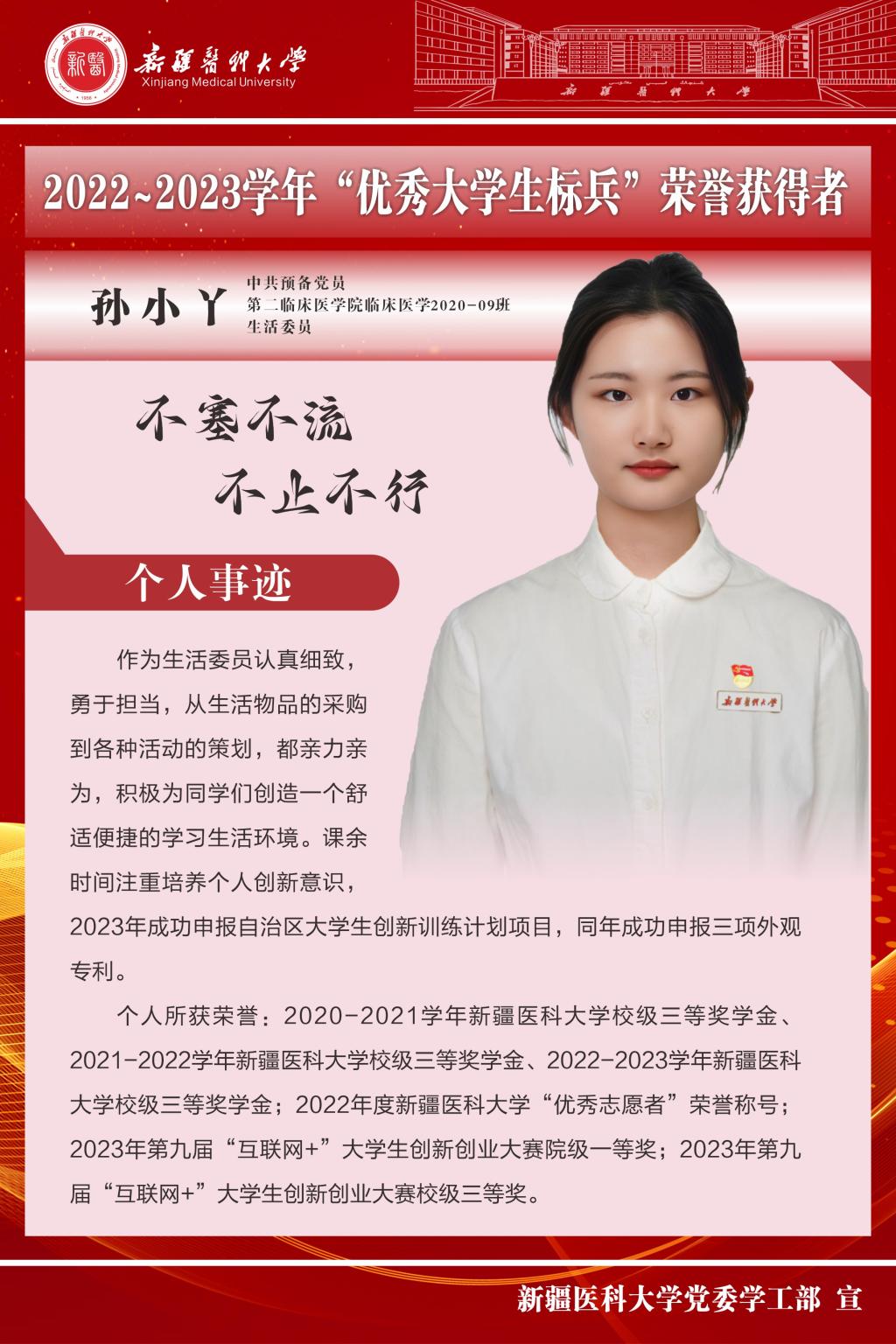这一年的步伐,新医人走得坚实有力,见神采、显底气,广大新医学子用踔厉奋发、拼搏奋进、团结奋斗的自信和力量,创造了2023年的优异成绩,书写了成长之路的美好篇章。为积极引导广大新医学子牢记初心使命、展现青春风采,表彰过去一年学校涌现出的政治立场坚定、道德品质高尚、学习成绩优异、学术行为端正、科研创新能力突出,德智体美劳全面发展的优秀集体和个人。今天学校官微推出beat365中文官方网站2022-2023学年“优秀大学生标兵”。