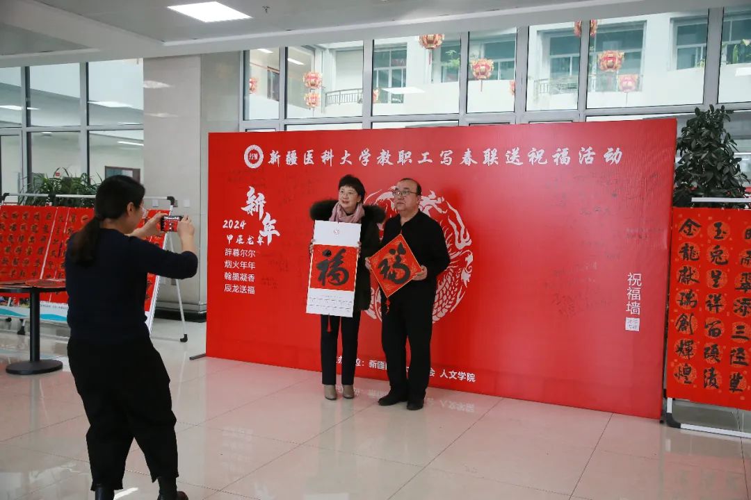 得到书法家亲笔书写的春联和福字,公共体育教研部的阿布都热扎克·买买提老师高兴地说:“春联是中国人欢度春节的重要标志,通过本次活动也是体现了咱们学校对中华优秀传统文化的重视,是学校对广大教职工的一份最诚挚祝福”。马克思主义学院的窦开泰老师说到:“这次活动非常有意义,让我们感到很温暖,体现了大学非常重视中华优秀传统文化,我也给家里写了几幅对联和福字,希望新的一年,beat365中文官方网站蒸蒸日上、越来越好。”
