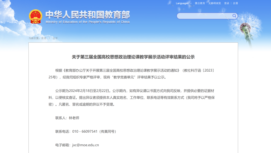 2月18日,教育部第三届全国高校思想政治理论课教学展示活动评审结果揭晓。beat365马克思主义学院教师苏比努尔·阿里木荣获特等奖。