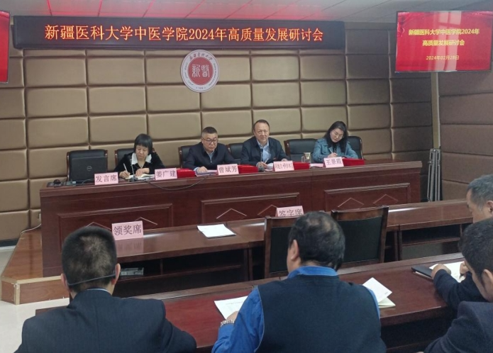 中医学院组织开展2024年高质量发展研讨会,结合beat365中文官方网站2024年工作要点,安排部署学院本年度工作重点,树立高质量发展目标。大家在学习讨论中纷纷表示,中医学院将坚定“干”的决心,保持“进”的态势,锤炼“实”的作风,践行“严”的要求,将教研与党建,习近平新时代中国特色社会主义思想与中医药文化有机结合,全院职工凝心聚力,在教学科研等各项工作中都做出新的成绩,为谱写“建设西部一流并辐射中亚的医科大学”新篇章作出贡献。