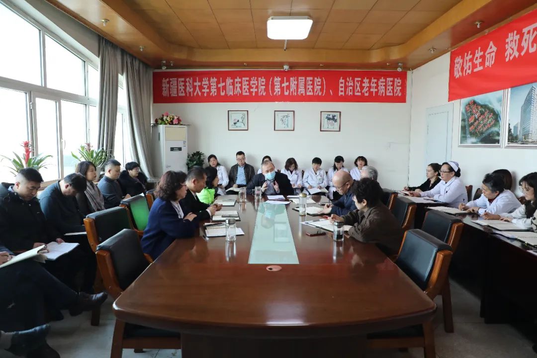 第七附属医院(第七临床医学院)召开专题会议,学习贯彻校党委二届三次全会精神,部署2024年工作。围绕建设“有特色高水平教学研究型医院”的奋斗目标,大家纷纷表示,要以立德树人为根本,以提高质量为核心,以改革创新为动力,以服务发展为导向,凝心聚力,奋力推进医院高质量发展。医院党委书记徐生智说,紧扣学校未来事业发展战略目标,对照2024年重点工作,广大干部职工要把自己摆进去、把职责摆进去,不断提升政治素养、强化担当意识、增强斗争精神,担当作为、开拓奉献,力推各项事业发展再上新台阶,持续推进全科医学专业特色方向培养,突出特色、打造亮点,为建设西部一流并辐射中亚的医科大学贡献力量。