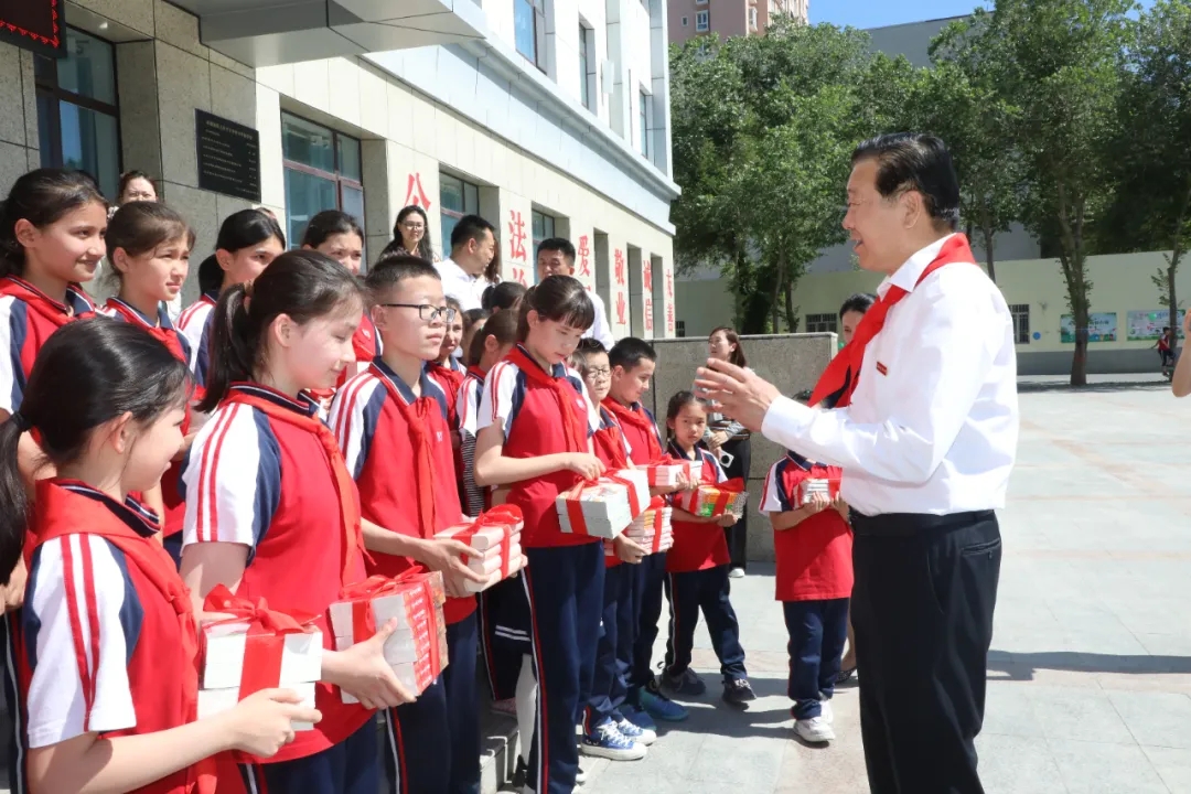 赵天杰实地考察了子女学校和幼儿园的办学条件、校园环境,走进教室与学龄前小朋友和小学生们交流互动,为孩子们送去青少年读物和儿童绘本,叮嘱孩子们要好好学习、快乐成长,今后努力成长为祖国的栋梁之才。