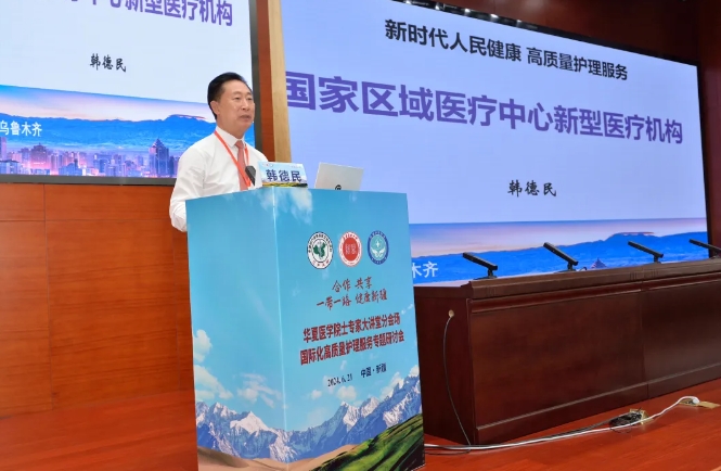 中国工程院院士、中国医促会会长韩德民院士以《国家区域医疗中心新型医疗机构》为主题拉开学术报告序幕,向护理人展示了新疆国际医疗中心建设的宏伟蓝图、解读了新疆国际化医药卫生发展的新模式,分享了新质生产力的概念思考与实践探索。