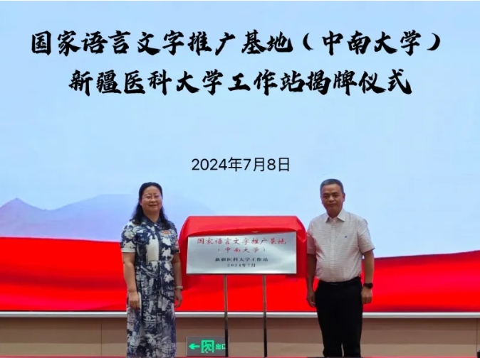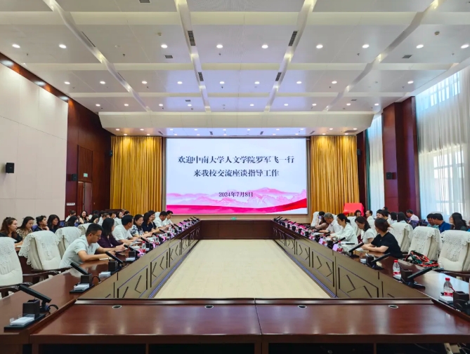 7月8日,中南大学人文学院党委书记罗军飞一行来到beat365交流座谈,并举行国家语言文字推广基地(中南大学)beat365中文官方网站工作站揭牌仪式,副校长刘涛出席座谈会,校党委常委、宣传部部长林素兰主持会议。