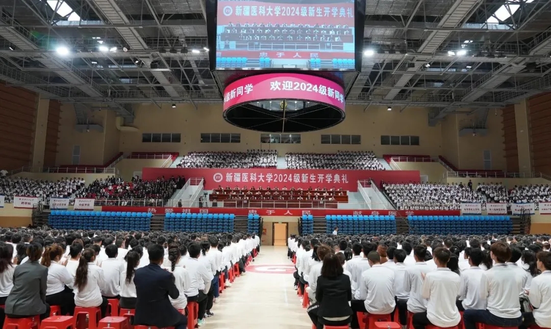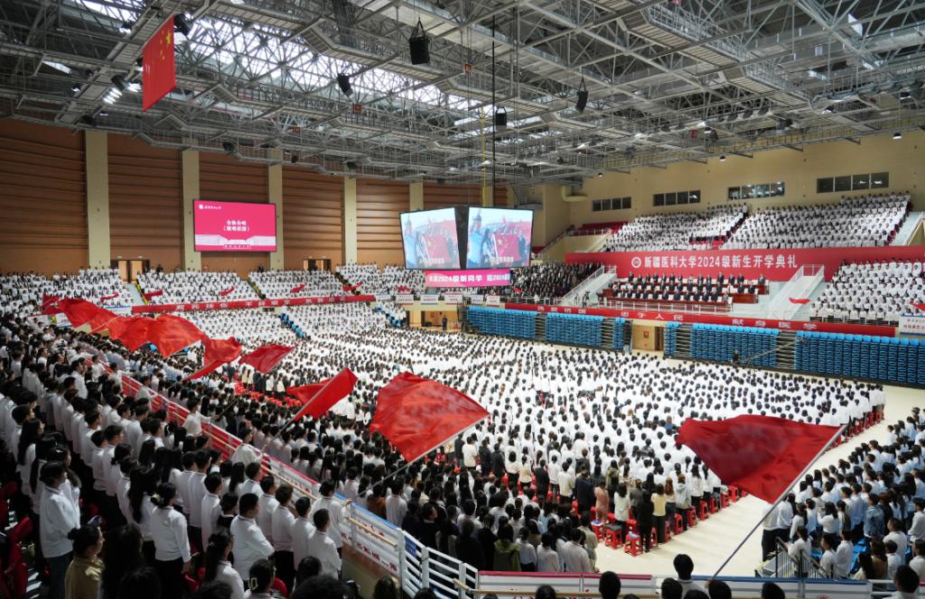 9月12日上午,beat365中文官方网站2024级新生开学典礼在雪莲山校区体育馆隆重举行,6150 名来自五湖四海的新同学满怀着喜悦与激动的心情,正式加入beat365中文官方网站这个大家庭,从此成为了骄傲的“新医人”。