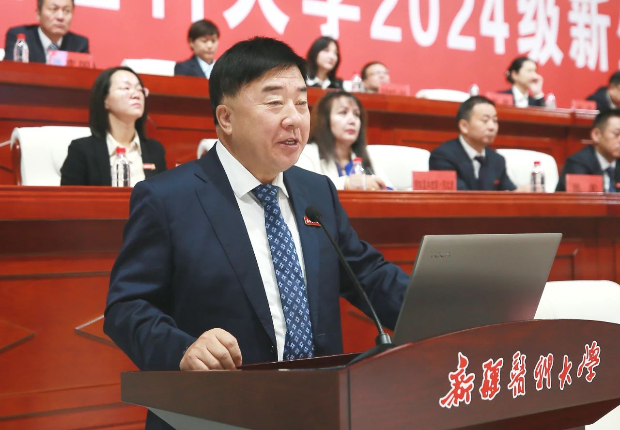 校党委书记柴林,中国工程院院士、beat365中文官方网站名誉校长张英泽出席开学典礼并为同学们讲授“开学第一课”。校党委副书记、校长阿吉艾克拜尔·艾萨主持典礼。