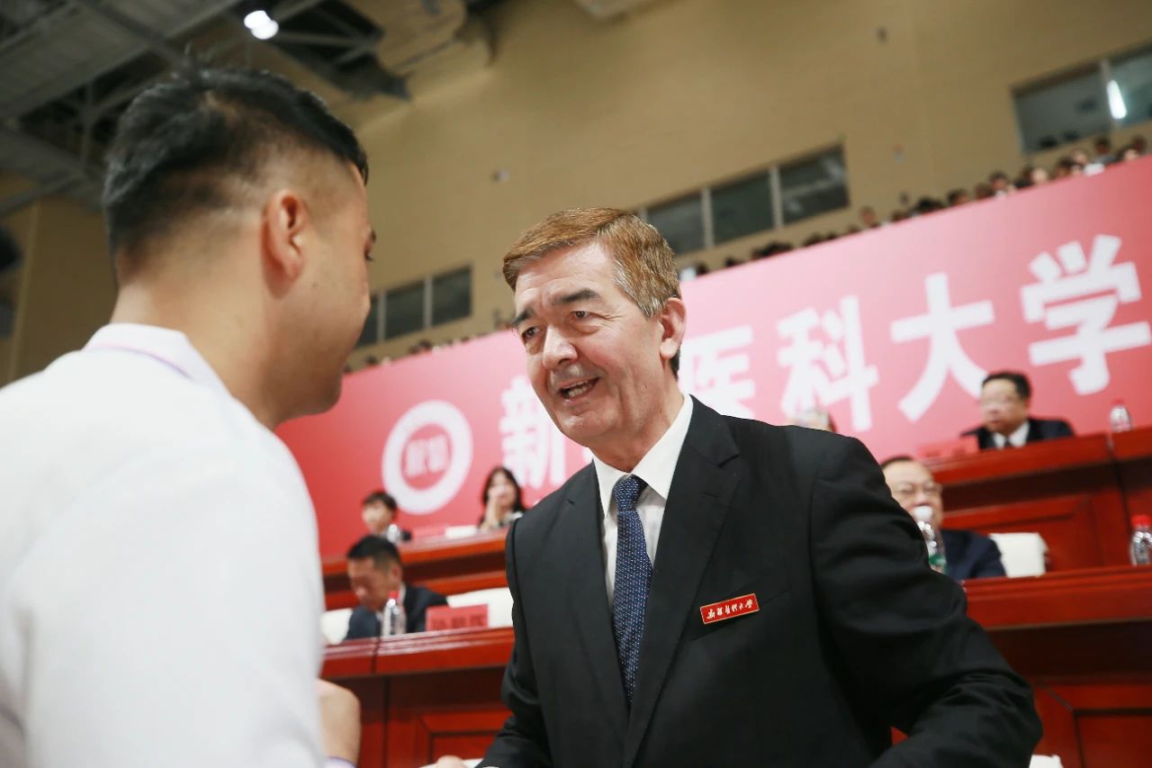 他勉励同学们,在这最宝贵的人生年华中,要加强身体锻炼,拥有健康体魄,树立“每天锻炼一小时,为祖国健康工作五十年”的生活理念;多读“有字之书”,做到理论基础过硬、专业功底扎实;多读“实践之书”,在“无字之书”中兼收并蓄、博采众长,涵养勤学善思、求索创新的习惯,用优良的医德医风、精湛的医道医术服务人民健康,努力成为一位受人尊敬、无上光荣的医疗卫生工作者。希望同学们继承并践行新医“好学、力行、笃医、创新”的校训,以奋斗待未来,不负伟大时代,成就光荣与梦想,努力成为更好的自己。期待同学们立鸿鹄志、当逐梦人,涵养“悬壶济世”的大胸襟,锤炼“叩问未来”的真本领,练就“破茧成蝶”的硬翅膀,向光奔跑、向上生长,不负青春梦,矢志学医路,做求真至善、堪当重任的新时代新医人。