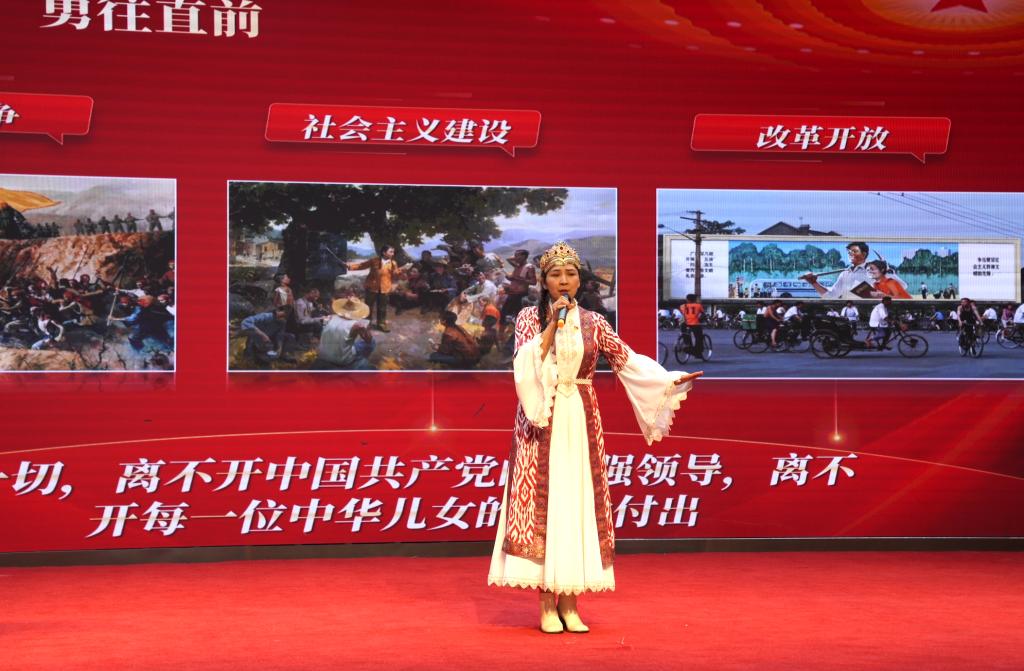 本次比赛由校党委宣传部、人文学院共同主办,全校各单位积极参与,共有31个单位报名,充分展现了各单位昂扬的精神面貌和高度的团结凝聚力、集体荣誉感。经过初赛和专家评审,有10支参赛队进入了当天的决赛,决赛由人文学院公共英语教研室卡力贝努尔·木台力甫和中国文化教研室张增吉两位老师主持,现场参赛选手们围绕主题,结合自身的工作实践与真实经历,以朴实生动的语言、真挚饱满的情感、昂扬向上的精神面貌,讲述了一个个触动人心、感人至深的故事,抒发了新医人对党的无限忠诚和对祖国的无比热爱,他们的精彩表现赢得了现场观众的阵阵掌声。