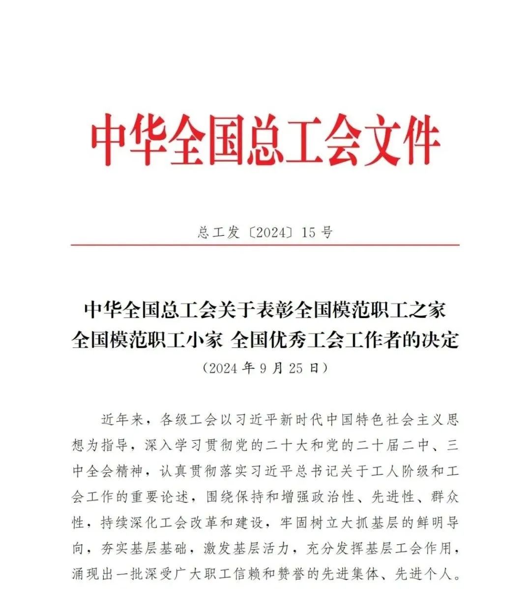 近日,中华全国总工会公布了关于表彰全国模范职工之家、全国模范职工小家、全国优秀工会工作者的决定,beat365中文官方网站第六附属医院工会委员会喜获“全国模范职工之家”荣誉称号。