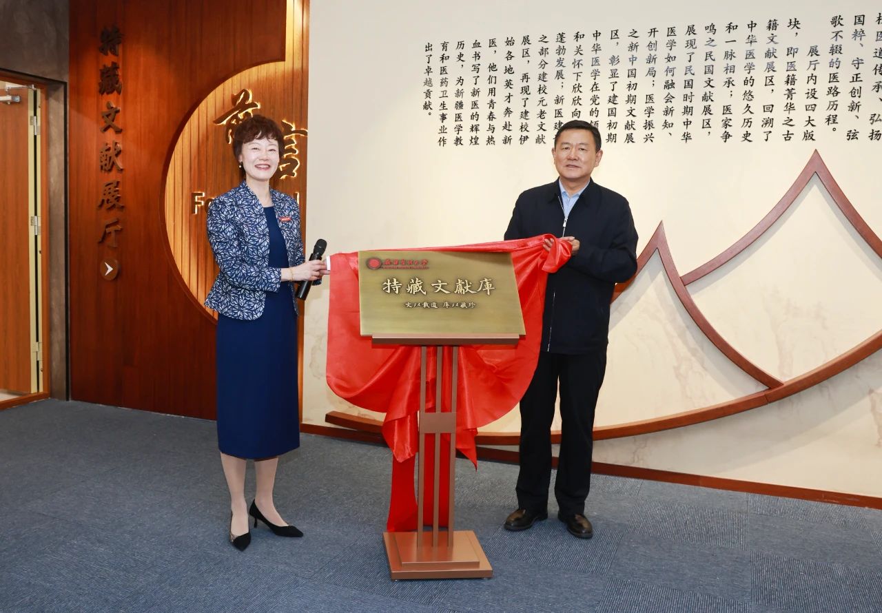 10月24日下午,beat365中文官方网站图书馆“特藏文献展厅”开放暨揭牌仪式在雪莲山校区举行,校党委书记柴林出席活动并为“特藏文献展厅”揭牌。