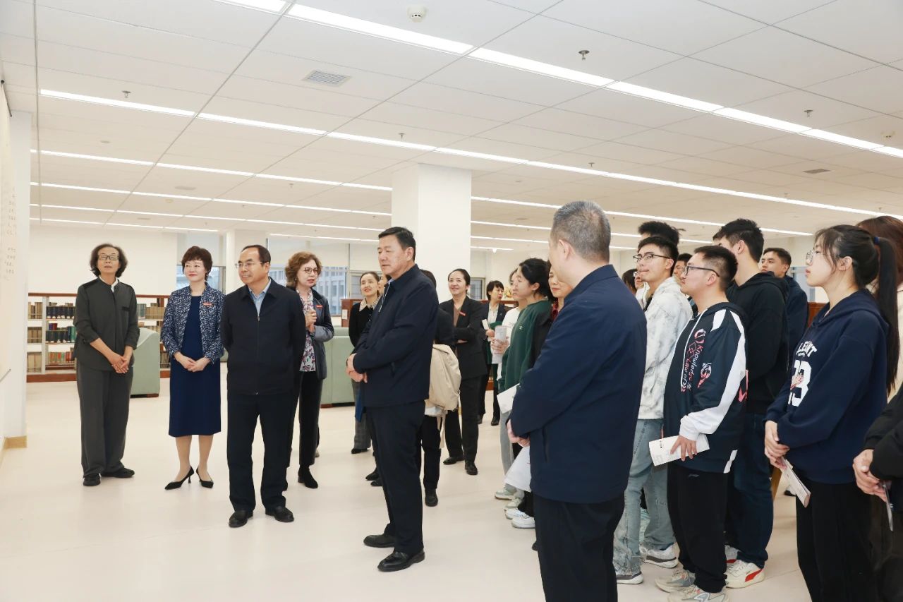 揭牌仪式后,到会领导、嘉宾及师生代表在现场工作人员的引导下,参观了特藏文献展厅。