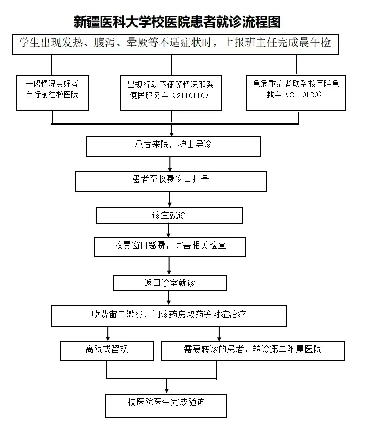 (4)若就诊学生病情复杂需转诊上级医院,医生会根据病情详细告知患者相关事宜,并联系班主任,由我院急救车转诊至beat365中文官方网站第二附属医院进一步诊治,或根据患者意愿自行前往上级医院进行就诊,接诊医生完成后期随访工作。
