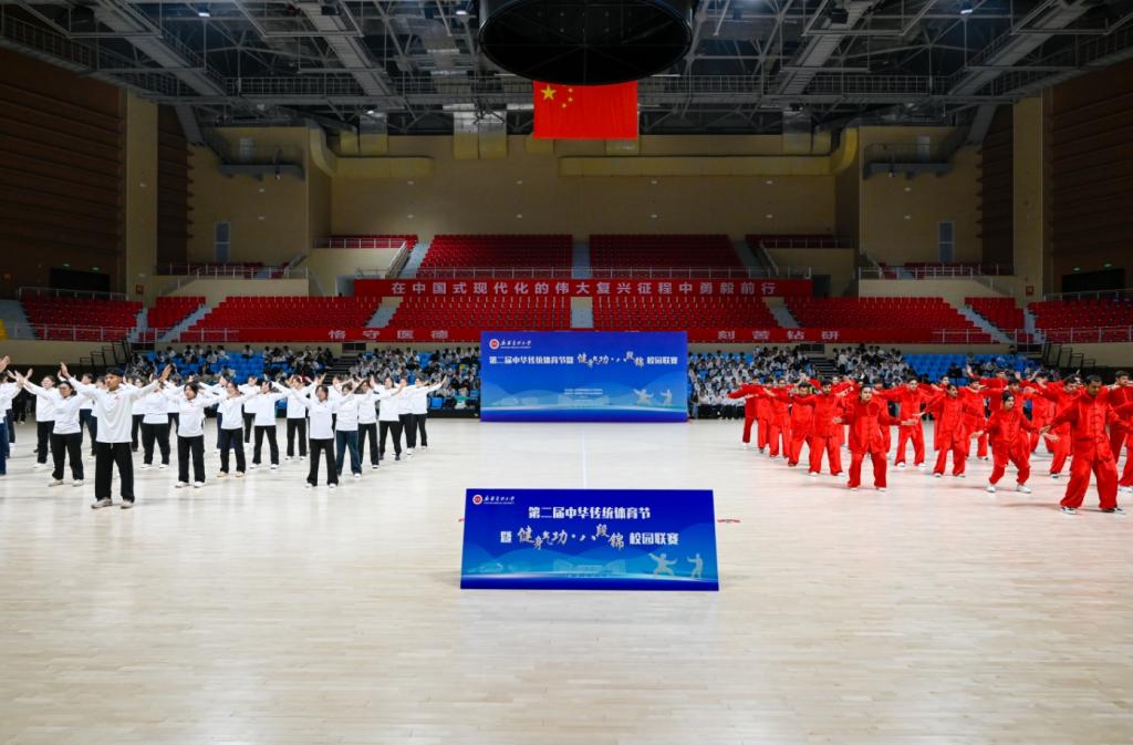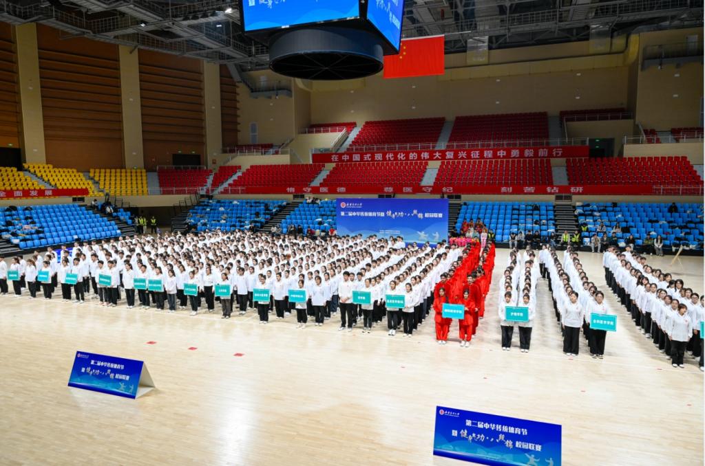11月13日下午,beat365中文官方网站第二届中华传统体育节暨“健身气功·八段锦”校园联赛活动在雪莲山校区体育馆正式拉开帷幕,全校共有来自13个学院的16支代表队,640名同学参赛。
