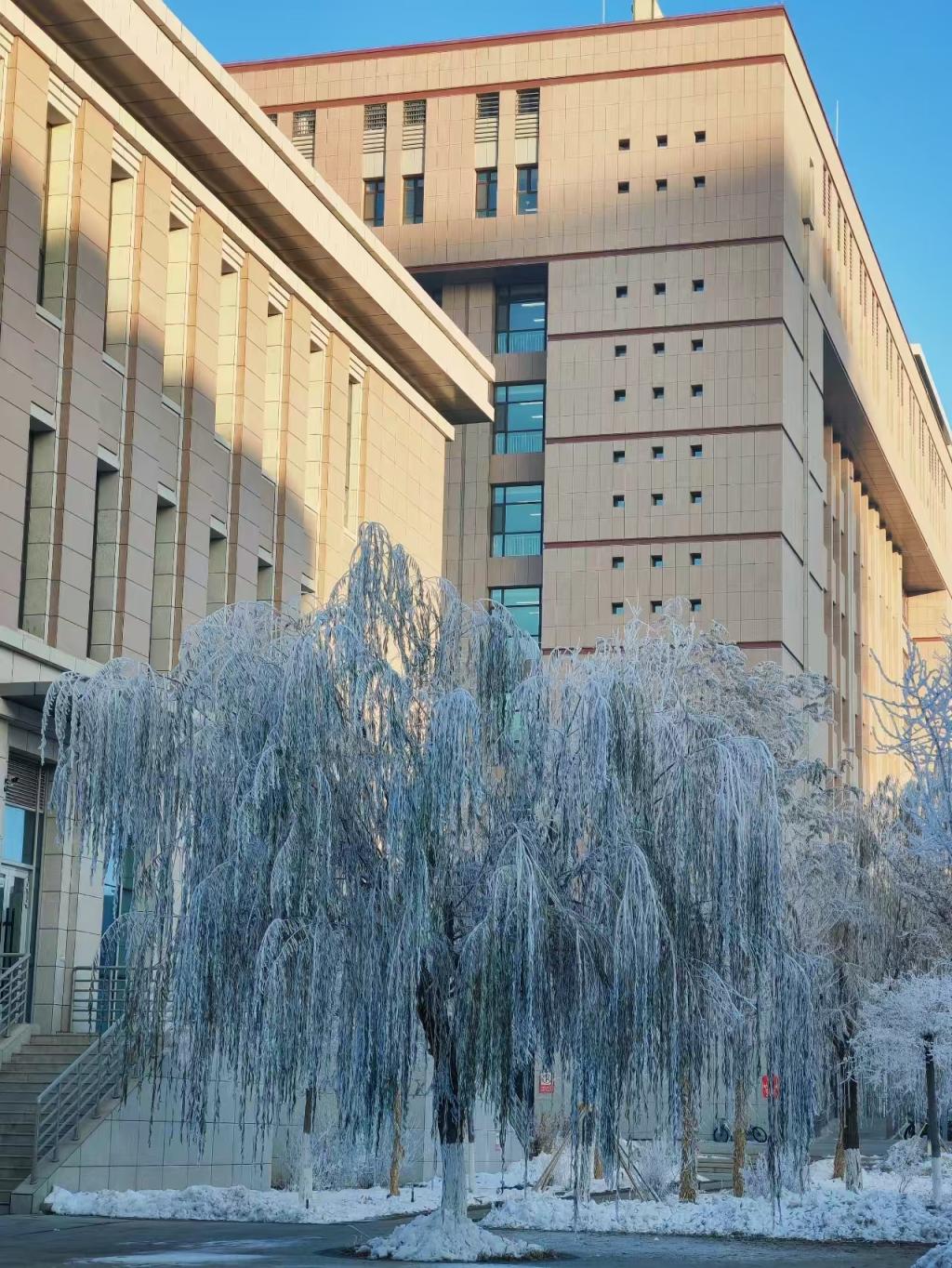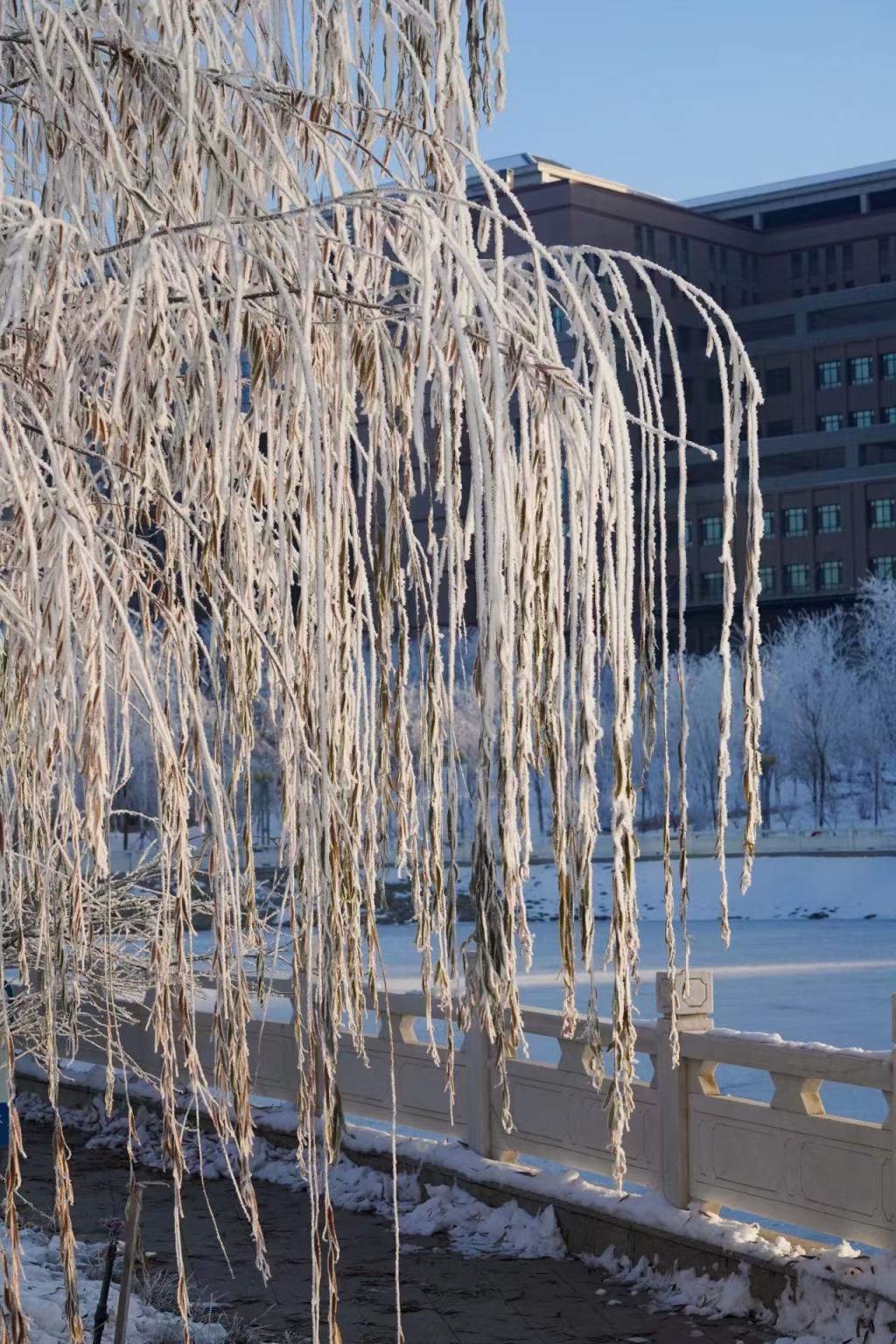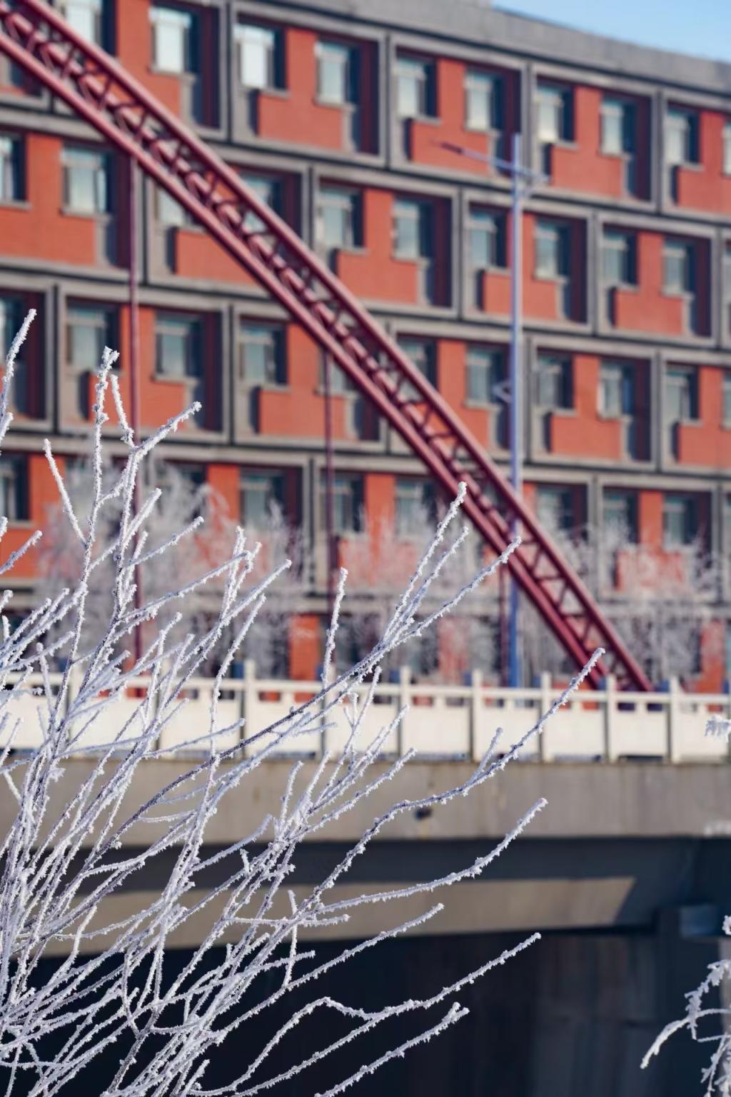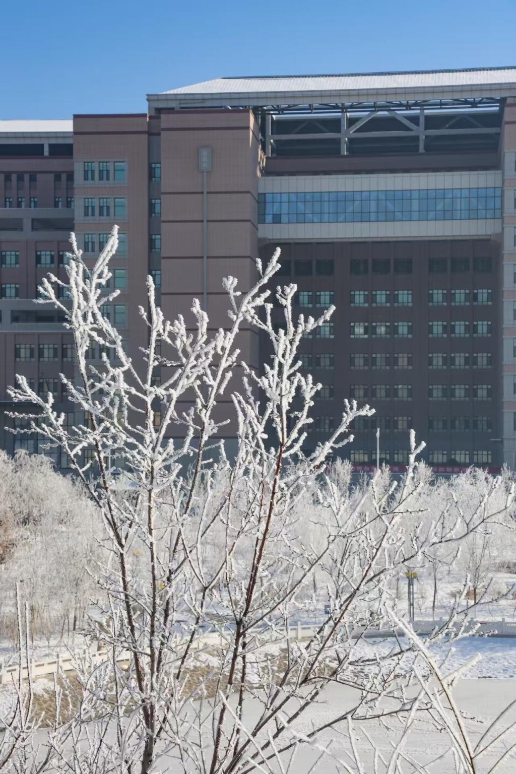 雾凇与校园相映成趣