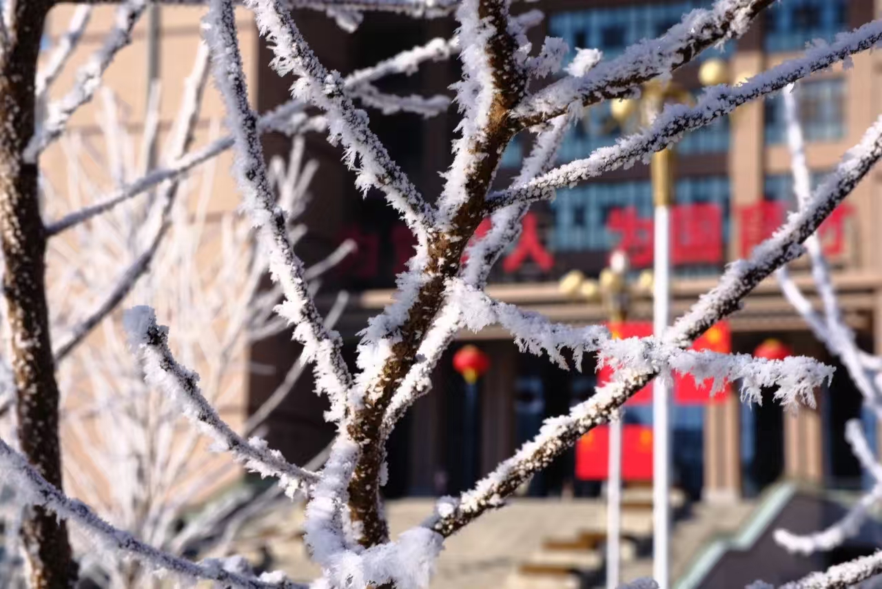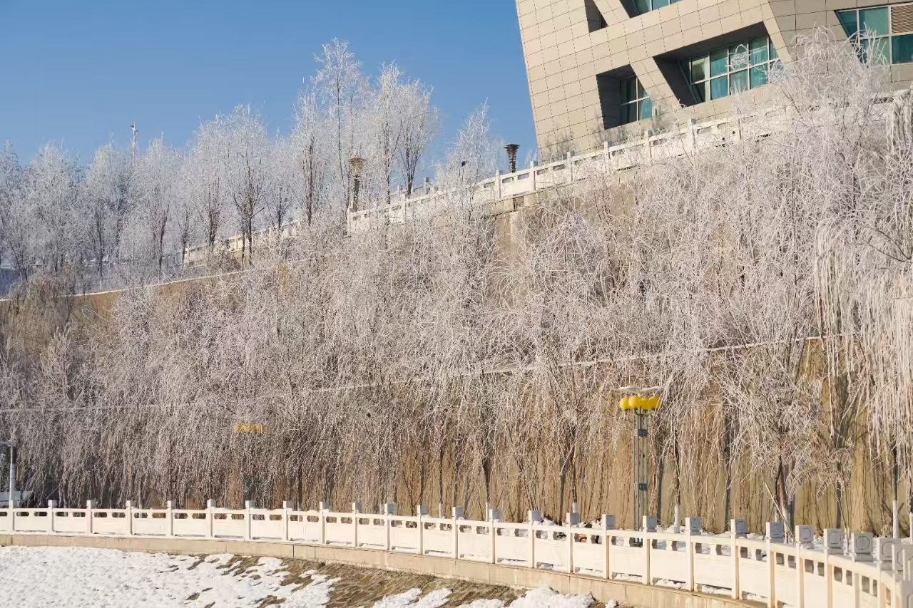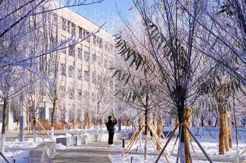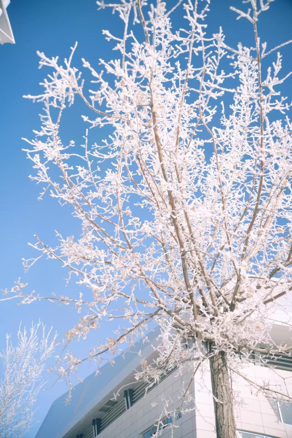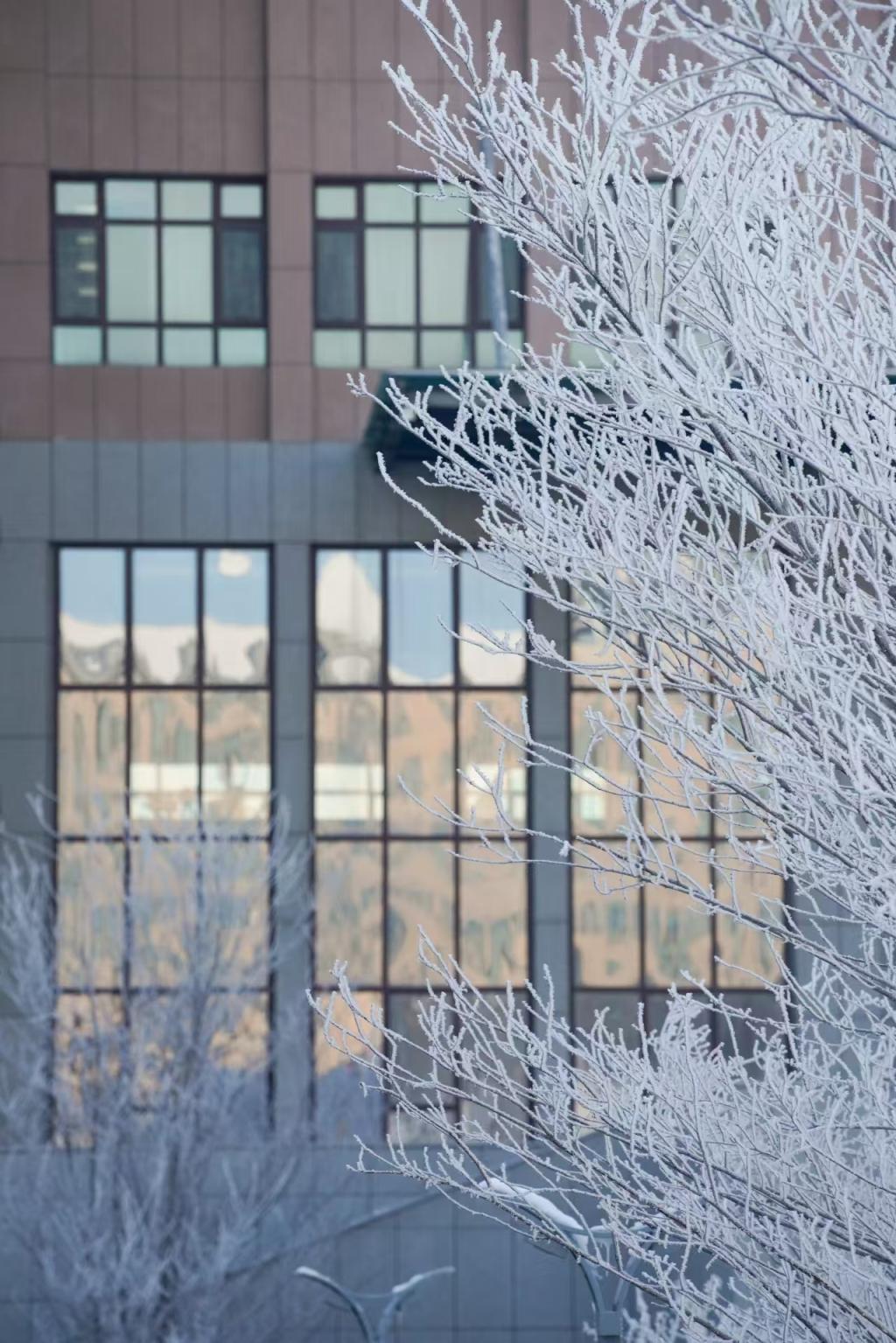 雾凇与校园相映成趣