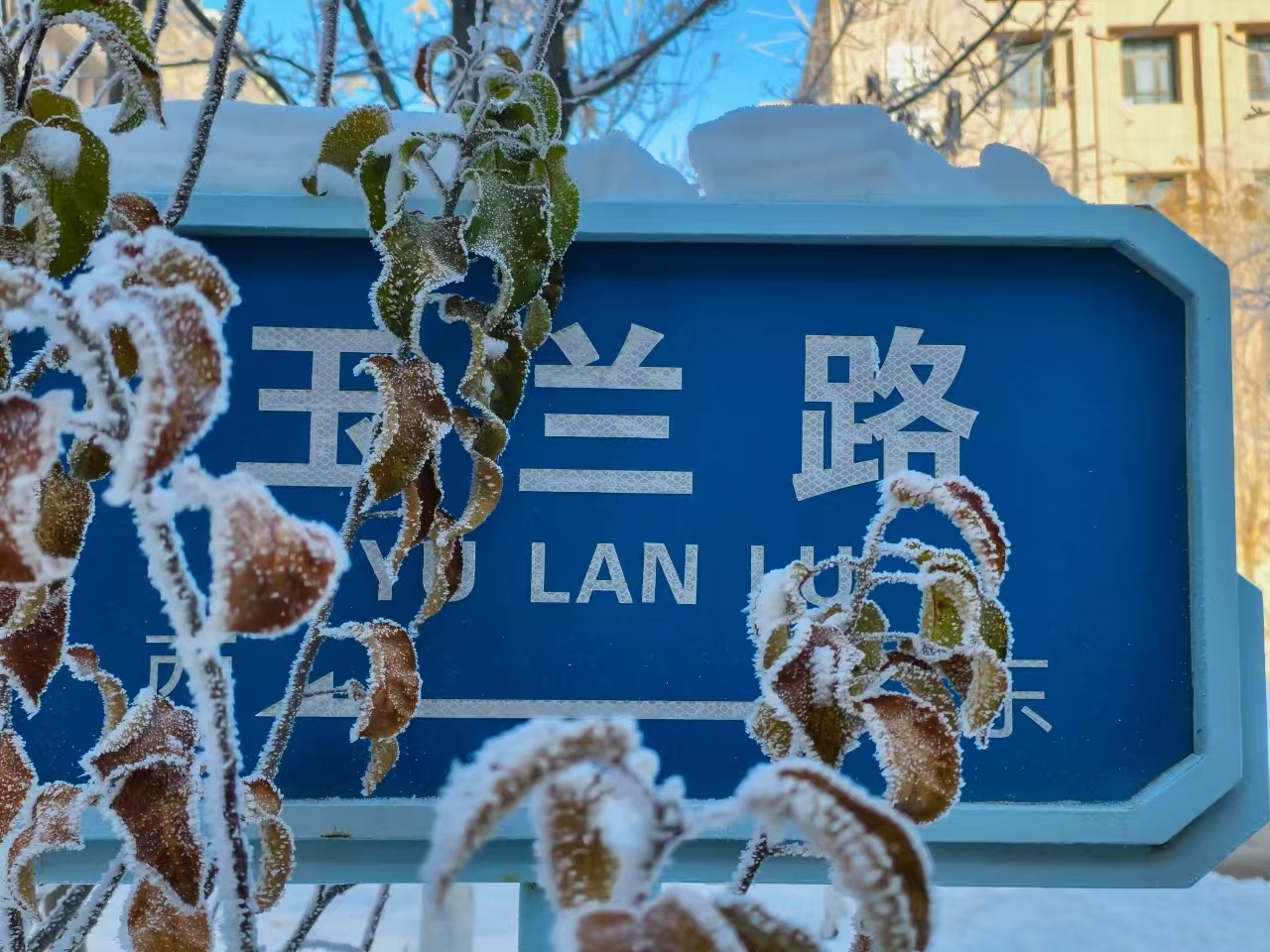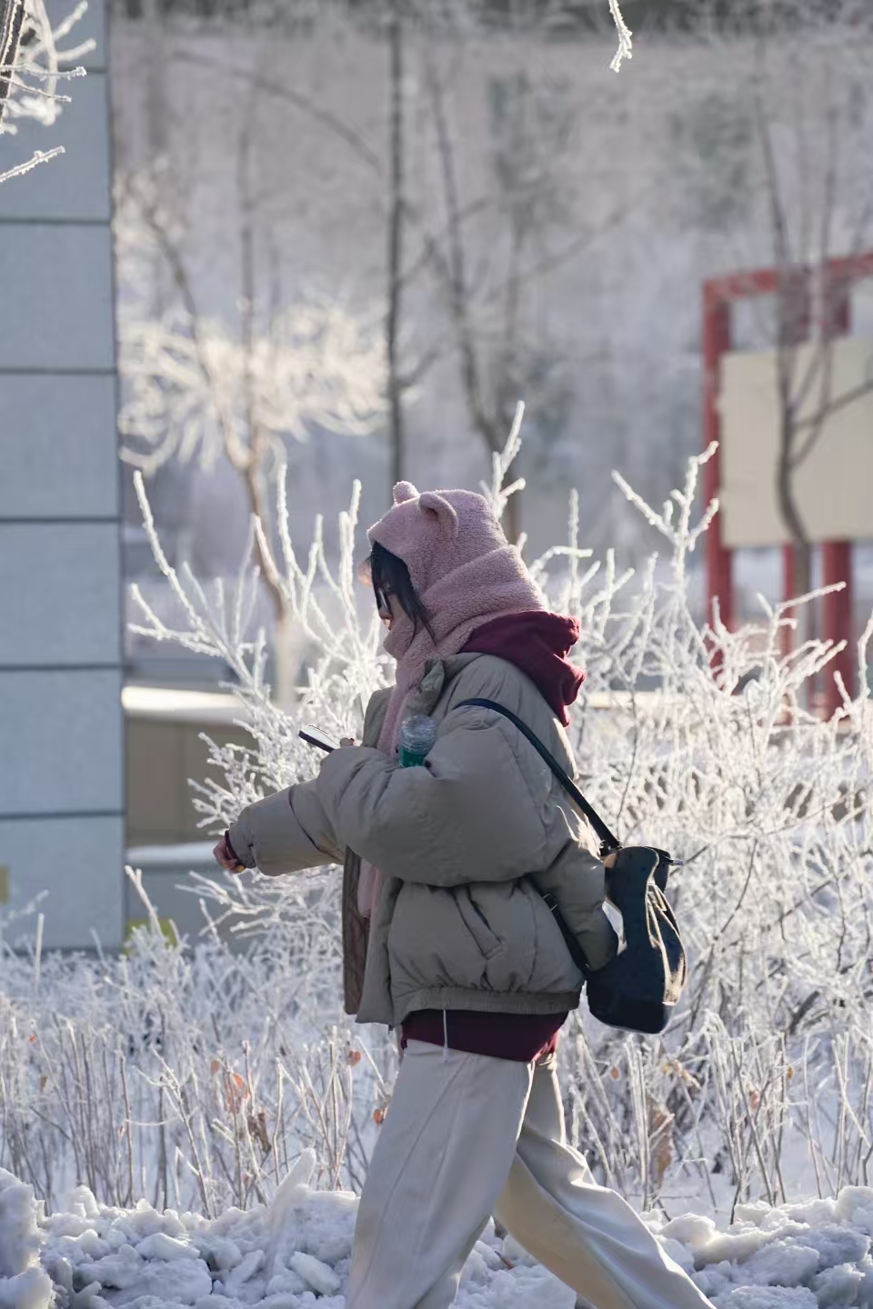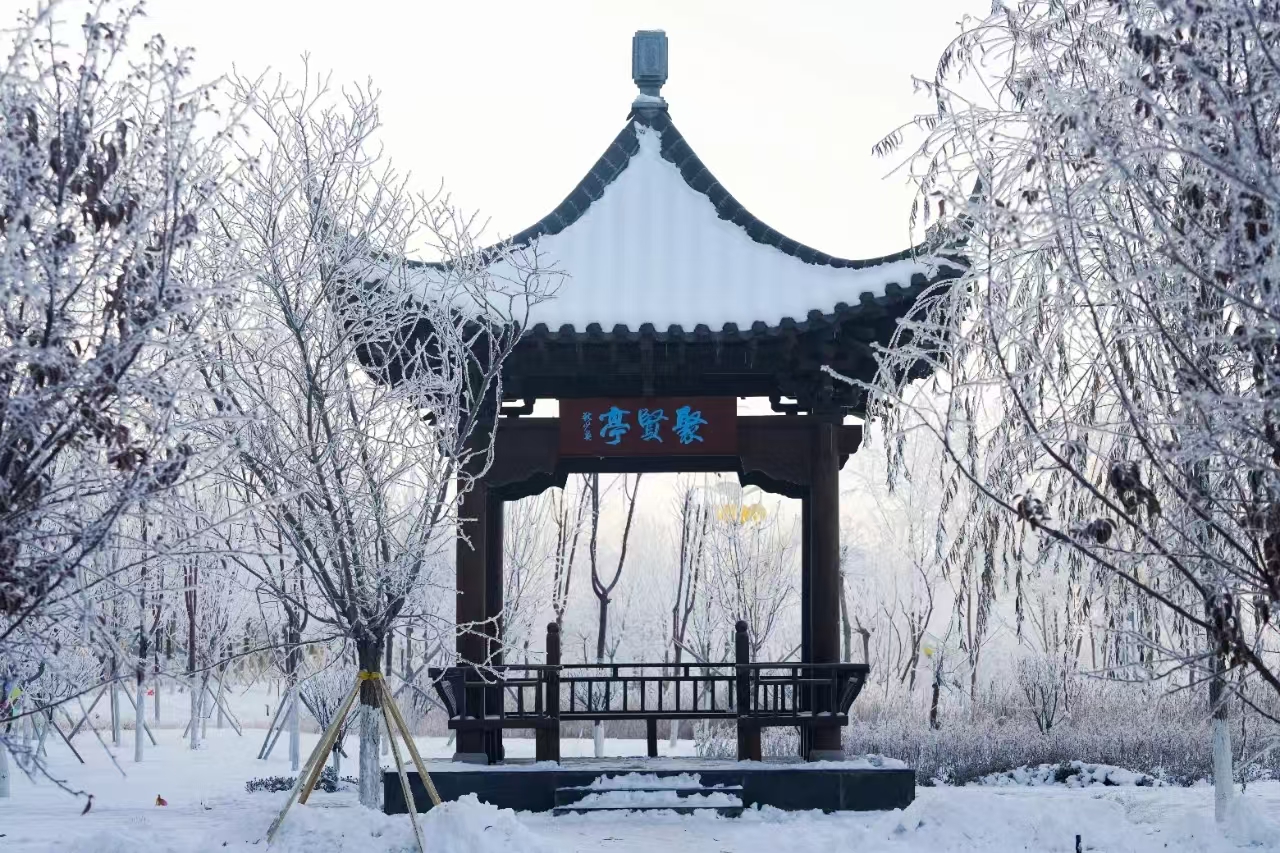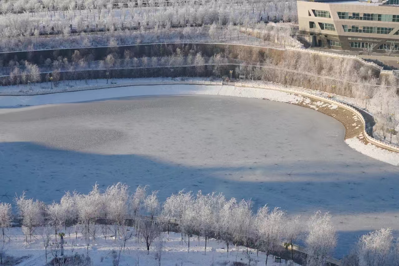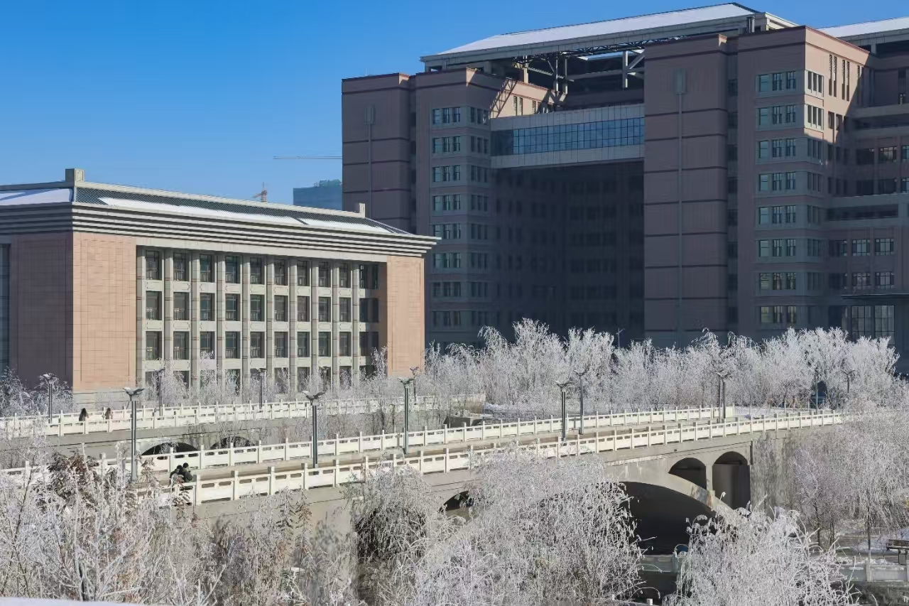 雾凇与校园相映成趣