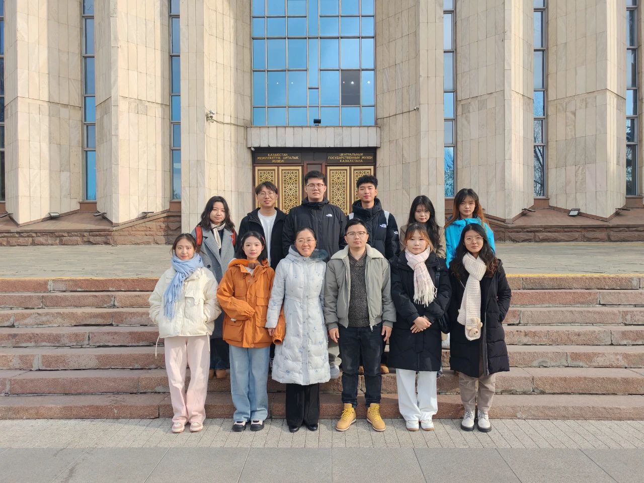 访学团在哈萨克斯坦阿里-法拉比国立大学前合影留念