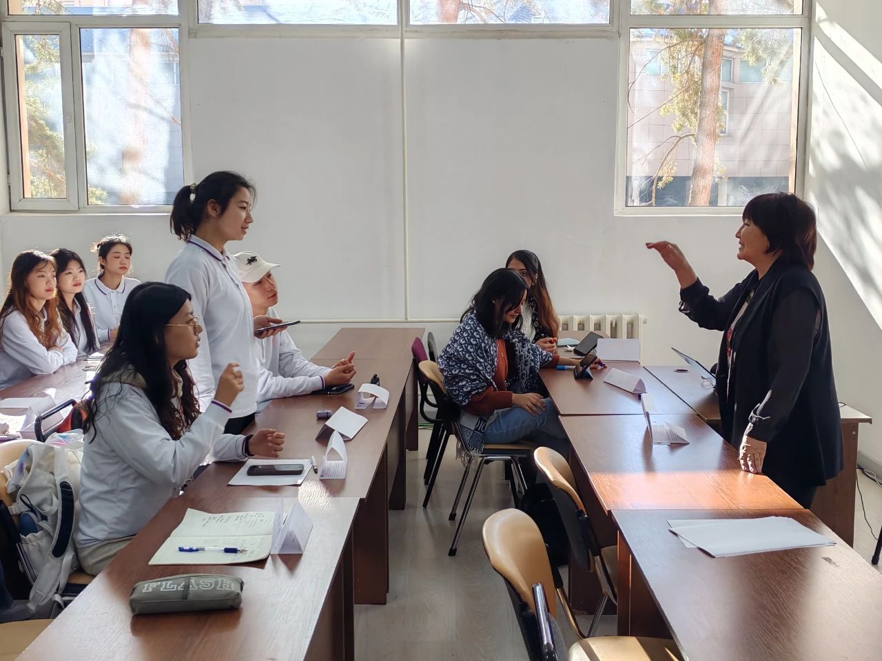 在哈萨克斯坦阿里-法拉比国立大学的校园里,访学团的同学们积极融入多元文化环境,与世界各地不同文化背景的同学们共同上课、热烈讨论。在药理学课堂上,新医学子们聆听专业知识讲解,感受不同教学风格下知识的传递;在流行病学课堂上,同学们深入探讨疾病传播规律与防控策略,思维在交流碰撞中不断拓展。