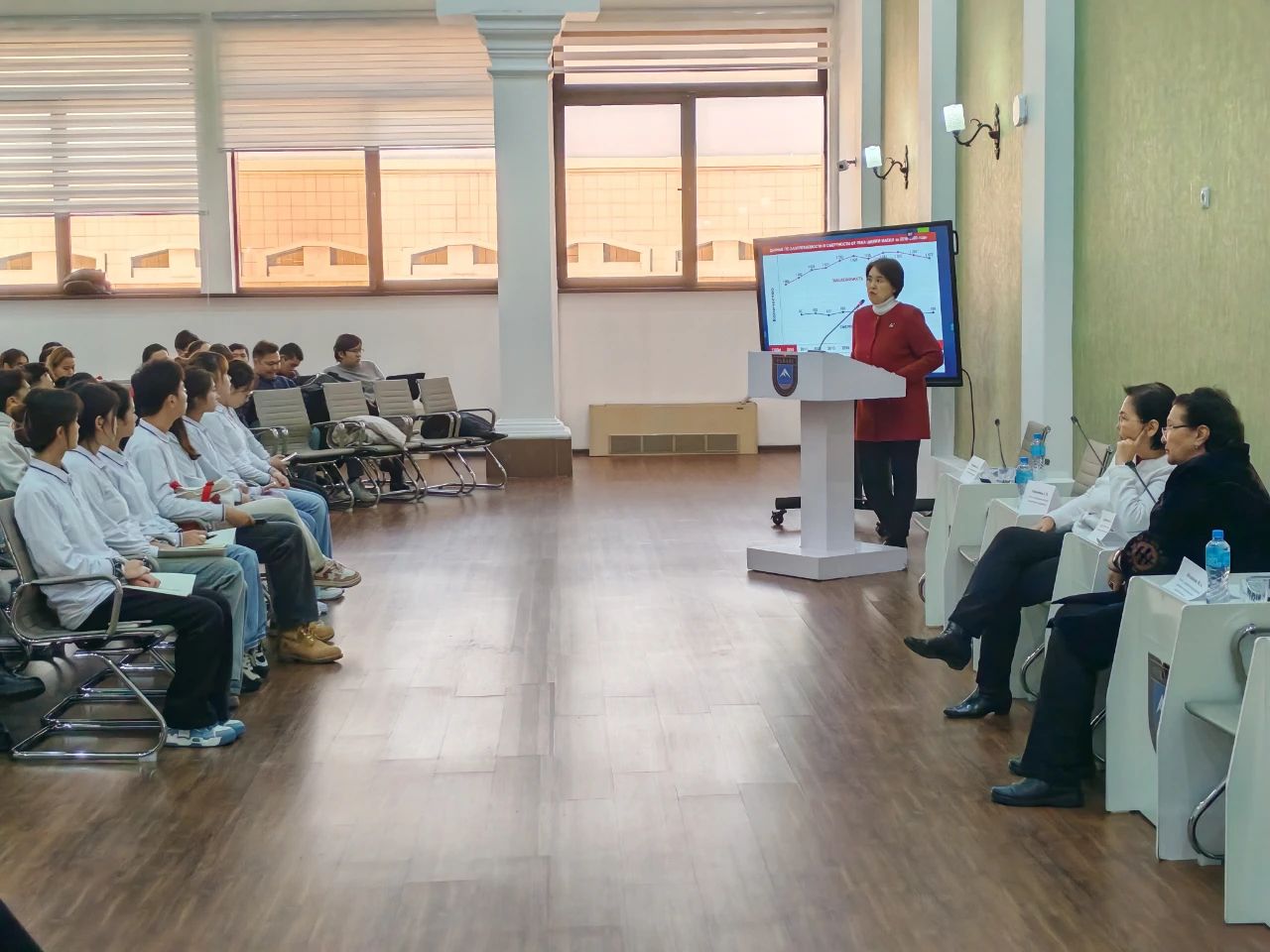 参加阿里-法拉比国立大学举办的“世界宫颈癌的流行与预防”医学专题分享会