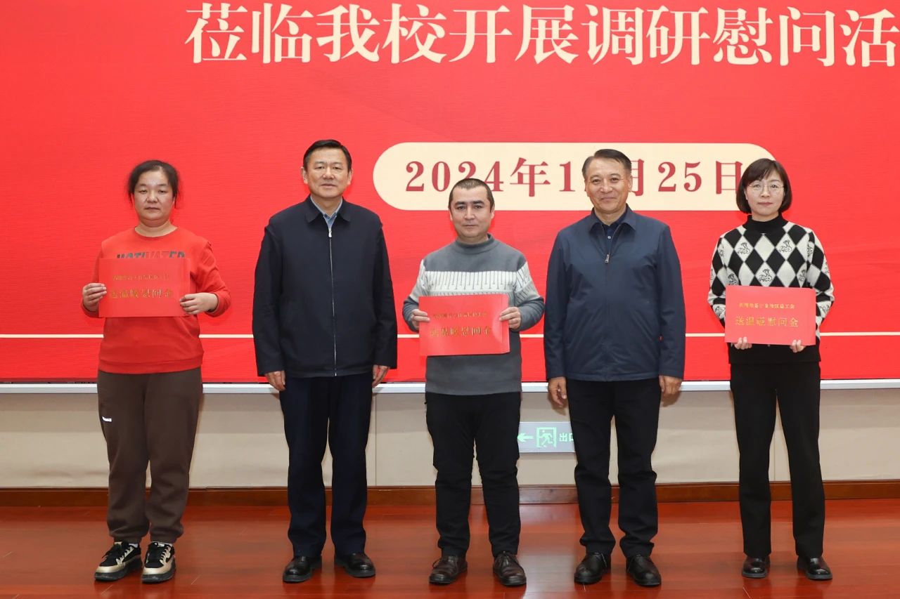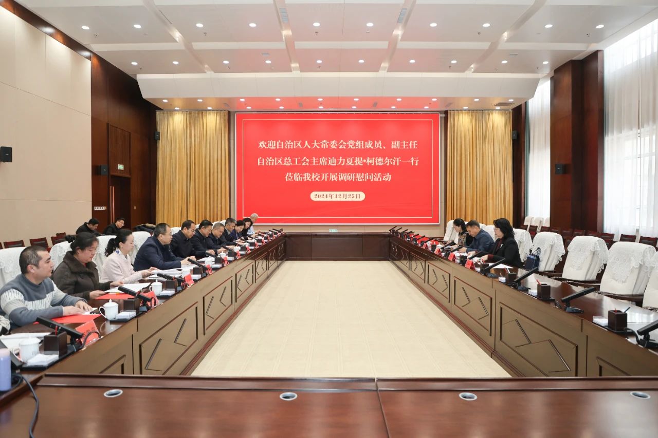 12月25日上午,自治区人大常委会党组成员、副主任,自治区总工会主席迪力夏提·柯德尔汗一行来beat365调研座谈,看望慰问职工代表和劳模代表,向奋战在一线的教职工和医务工作者送来关怀和温暖。