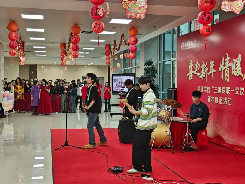 护理学院举办了“喜迎新年 情暖人心”迎新晚会暨“三进两联一交友”联谊活动,全院师生共同欢乐跨年。