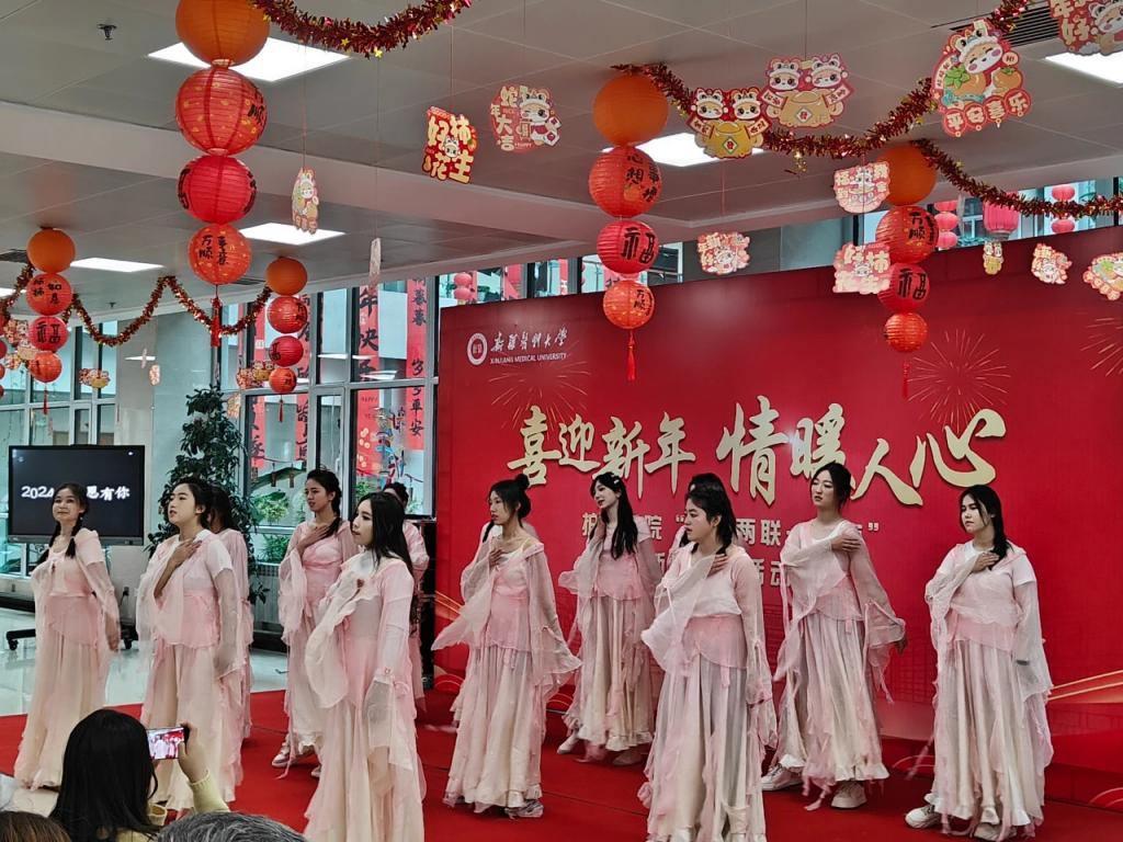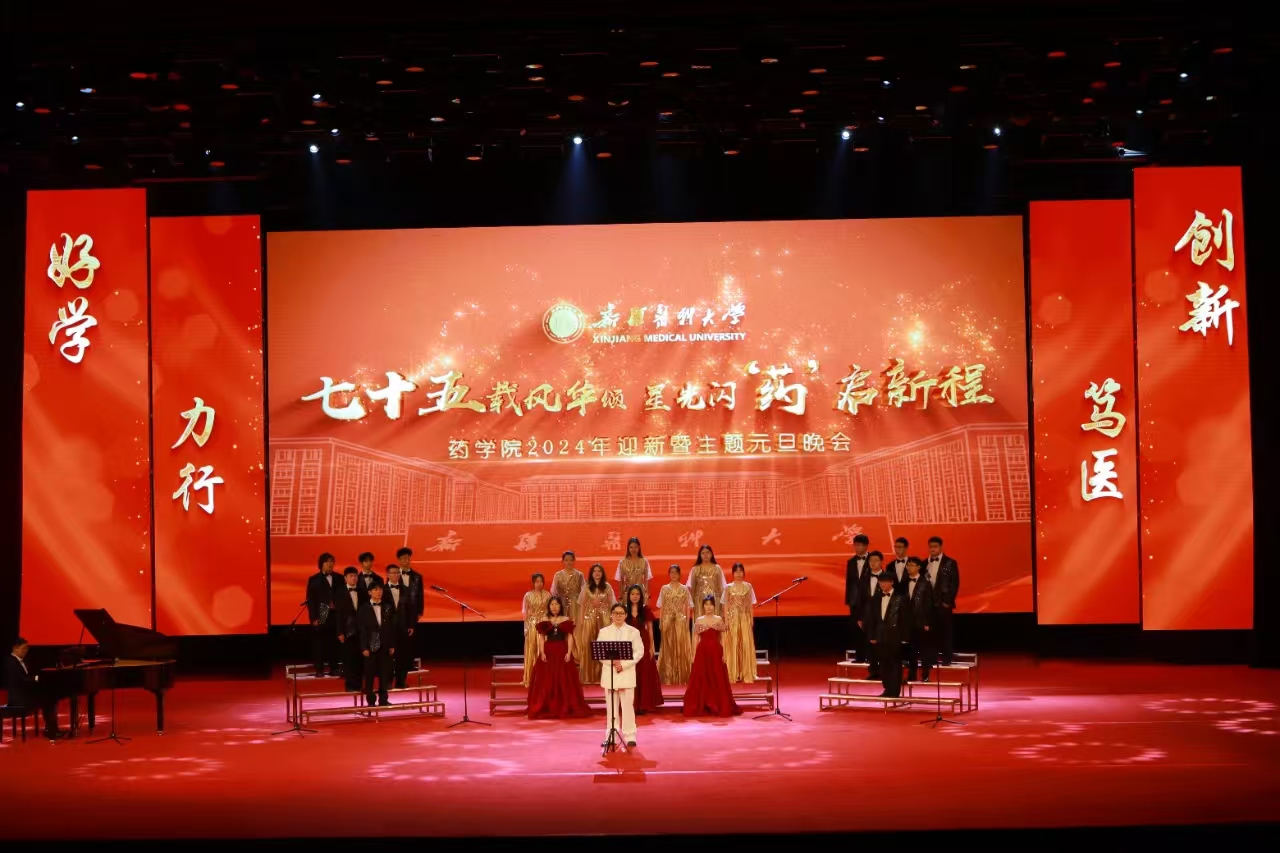 药学院举行以“七十五载风华颂星光闪‘药’启新程”为主题的迎新元旦晚会。整场晚会节目丰富、形式多样,大合唱、舞蹈、朗诵、情景剧逐次亮相,现场不时响起阵阵热烈的掌声。