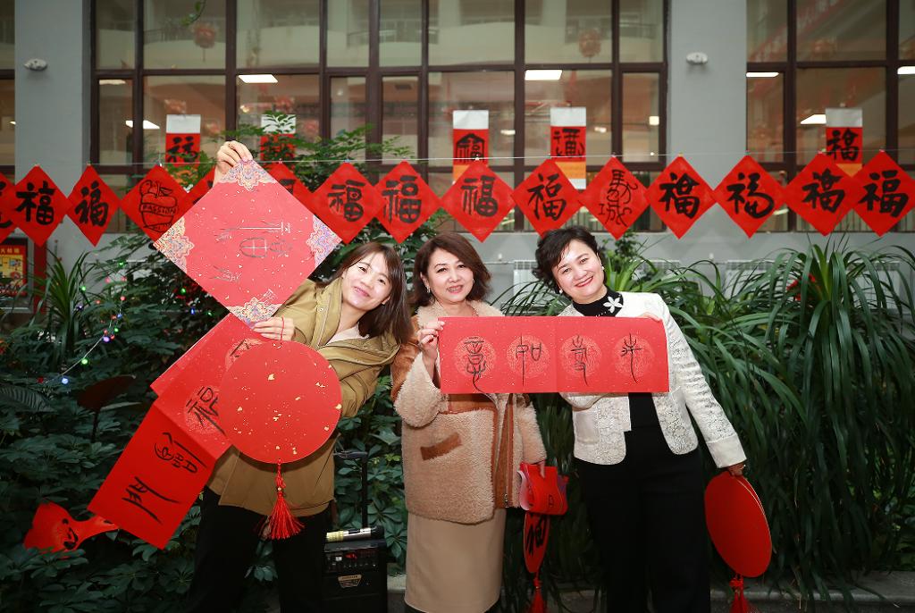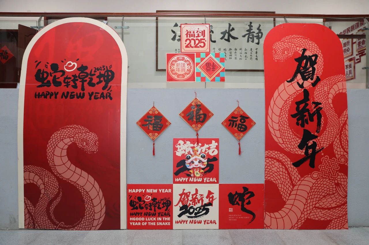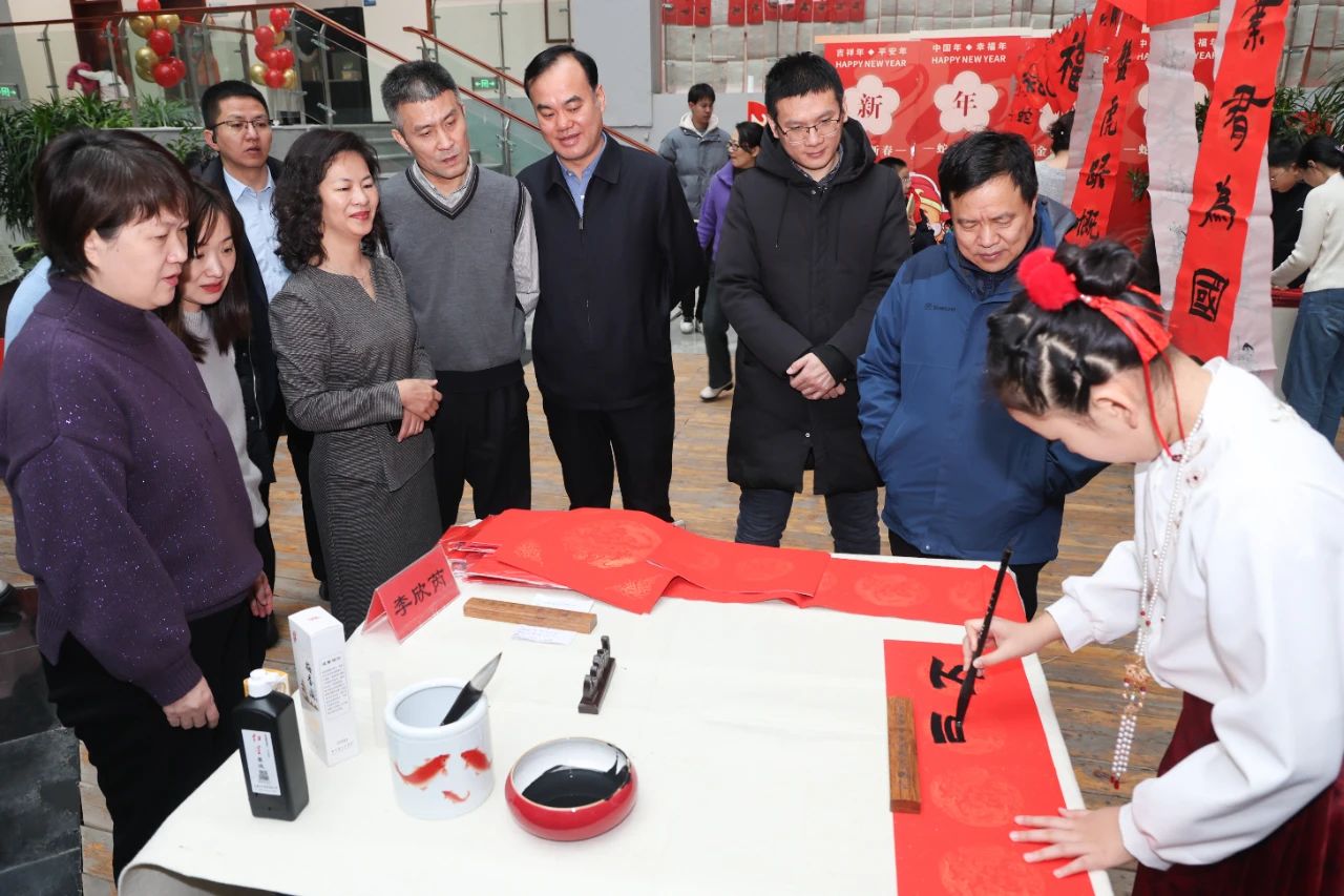 走进基础医学楼,百余幅春联和福字挂满了大厅展板和中庭,活动现场红纸铺展,墨香四溢。现场设置了获奖春联展示区,对全校师生富有特色、寓意吉祥的优秀原创春联作品进行展示,大家纷纷驻足欣赏称赞。